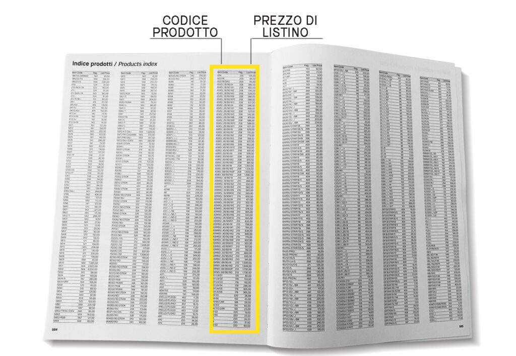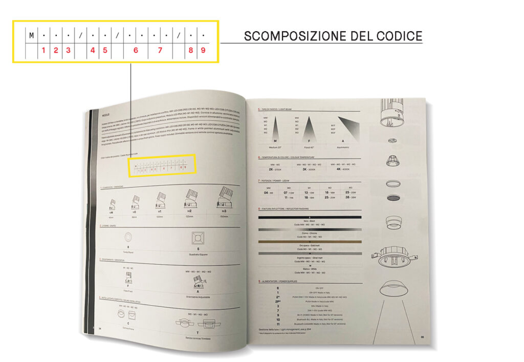 Per progettare in autonomia garantiamo anche la spiegazione dei codici e delle particolarità che contraddistinguono i prodotti.