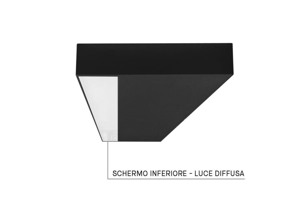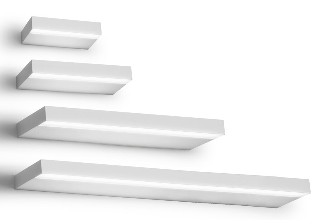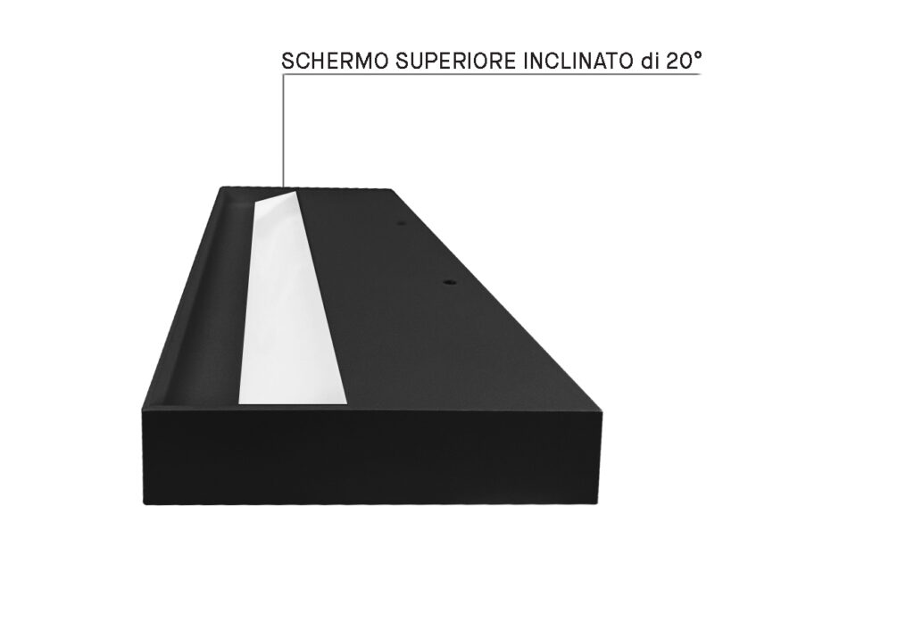 Plank può essere mono o bi emissione. Caratteristica fondamentale è la conformazione dello schermo superiore: ha un’inclinazione di 20° così da garantire una buona efficienza luminosa, oltre che una migliore diffusione della luce.