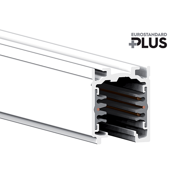 Binario elettrificato in alluminio estruso verniciato bianco o nero, per installazione a plafone