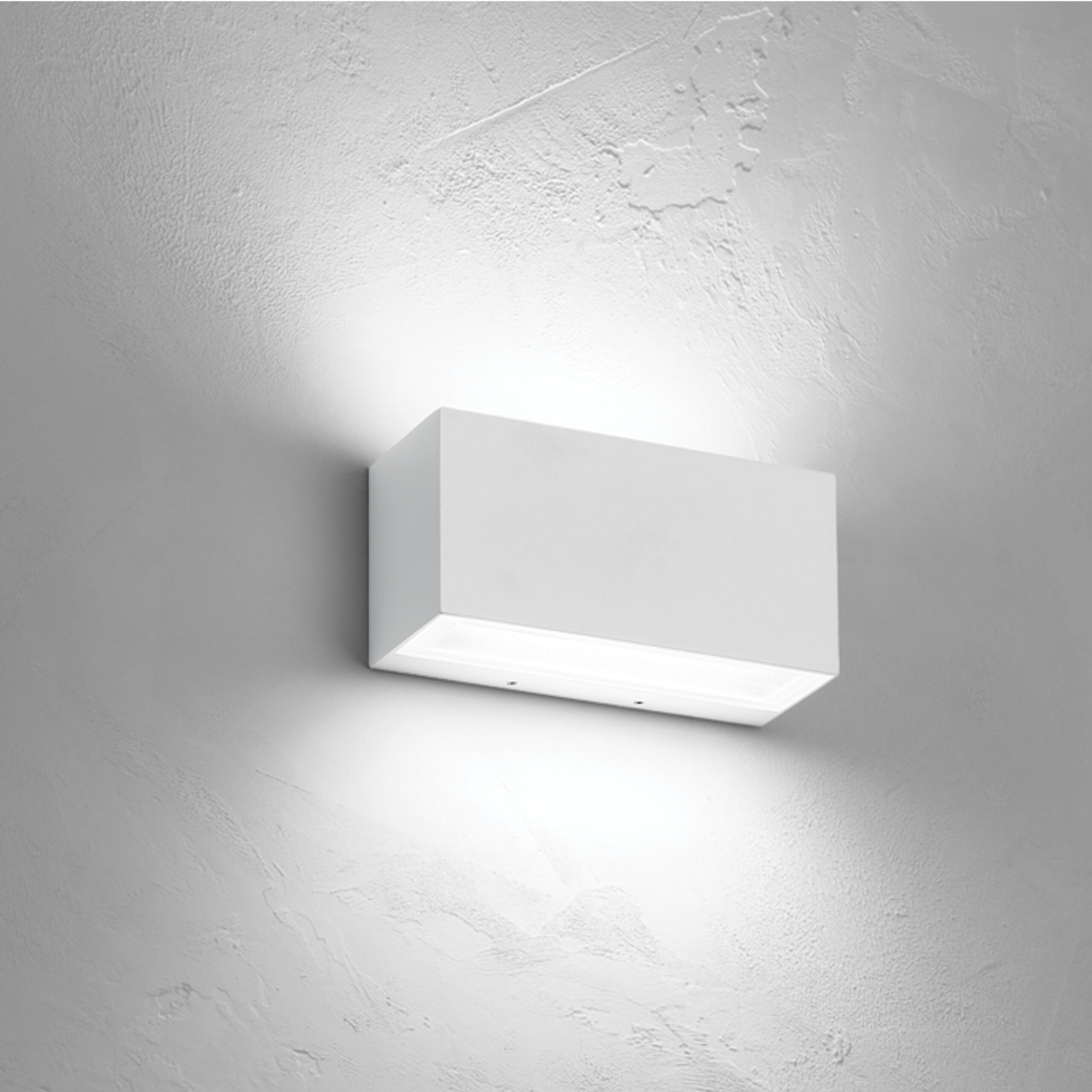 Apparecchio LED per installazione a parete, con fascio bi direzionale. LED SAMSUNG. Lifetime 36.000h (rendimento 70%). Corpo in alluminio pressofuso a basso contenuto di rame, verniciato grigio, bianco, antracite o marrone scuro. L’apparecchio è dotato di base di fissaggio a parete pre cablata con morsetti ad innesto rapido. Vetro trasparente con diffusore microprismatico. Guarnizioni in silicone. Viti in acciaio Inox. Scheda LED dimmerabile a tensione di rete 220-240V.