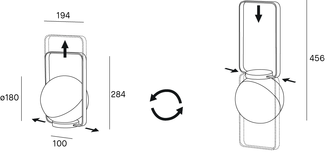a 180°. Diffusore in policarbonato. Dim: 3-step (25% 20ore – 50% 10ore –