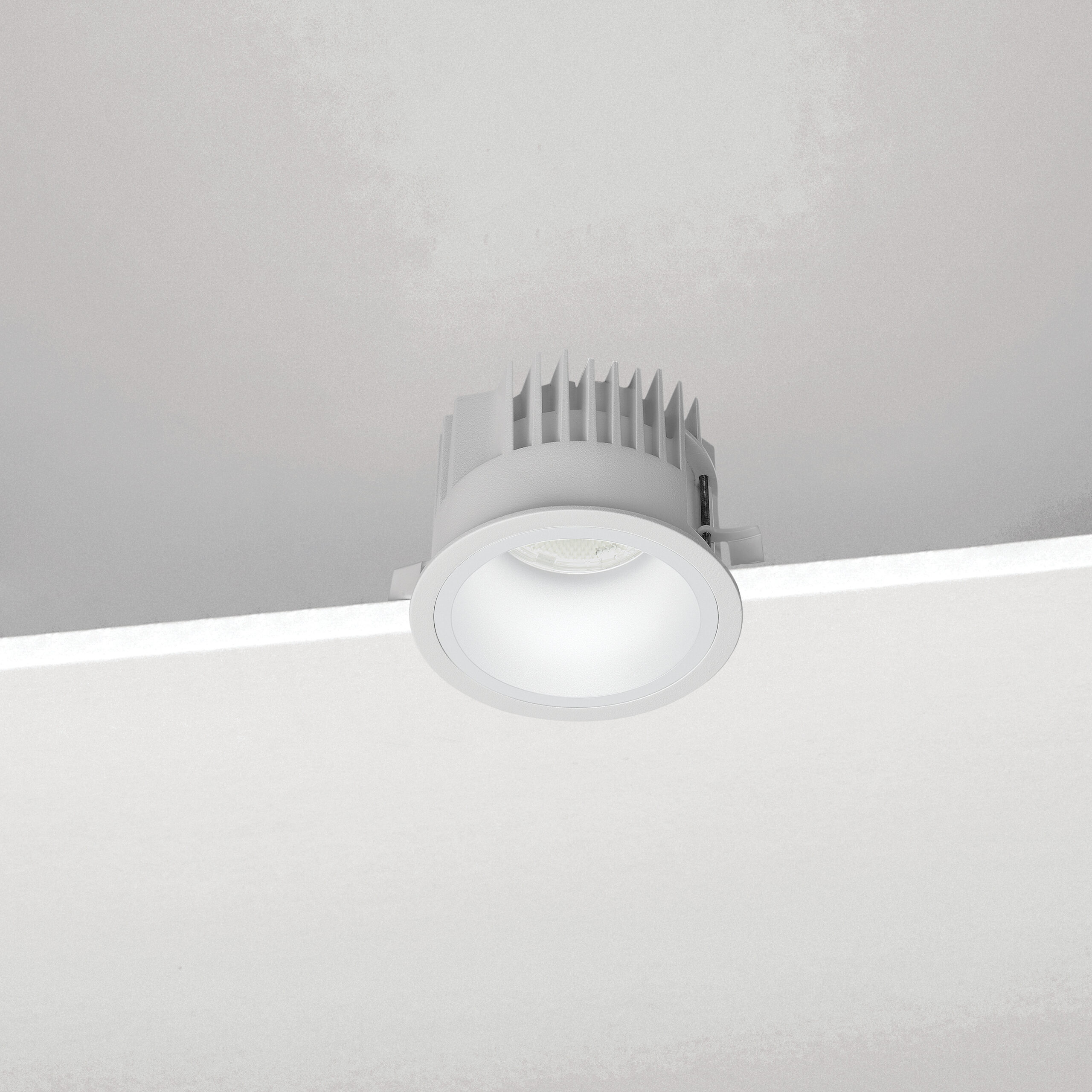 Incasso LED tondo per installazione a soffitto. LED COB CITIZEN CRI>90 Lifetime >50.000h (L70B10). Corpo in alluminio verniciato bianco. Riflettori in policarbonato o alluminio, in 3 finiture diverse. Alimentatore incluso. Disponibili versioni dimmerabili e controllo remoto.