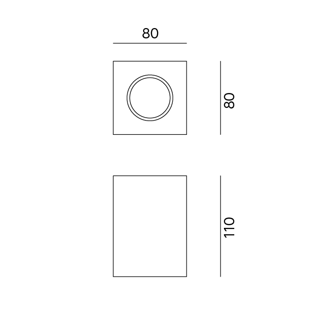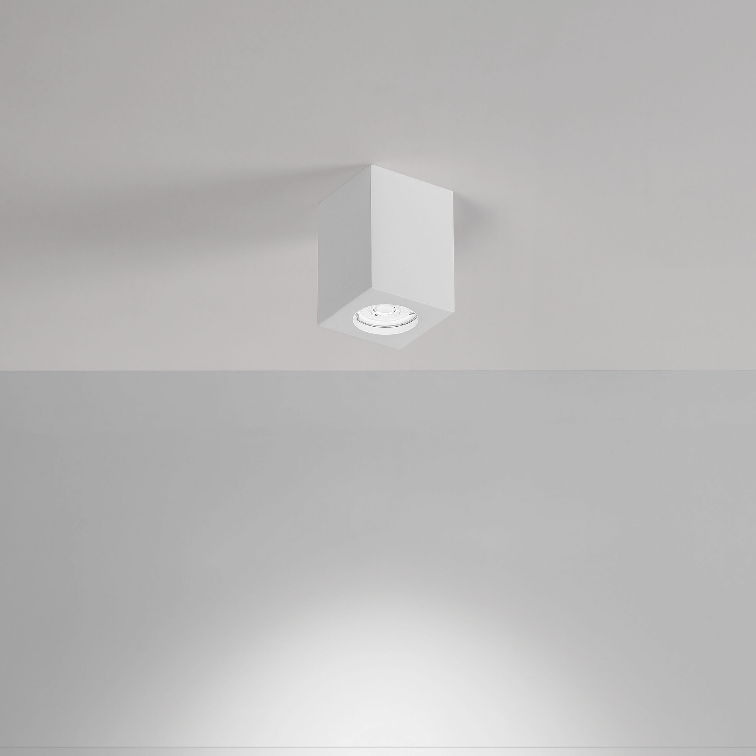 Plafone quadrato in gesso. Portalampada GU10 integrato. Lampada LED GU10 non inclusa. Corpo in gesso. Alimentazione 220-240V.