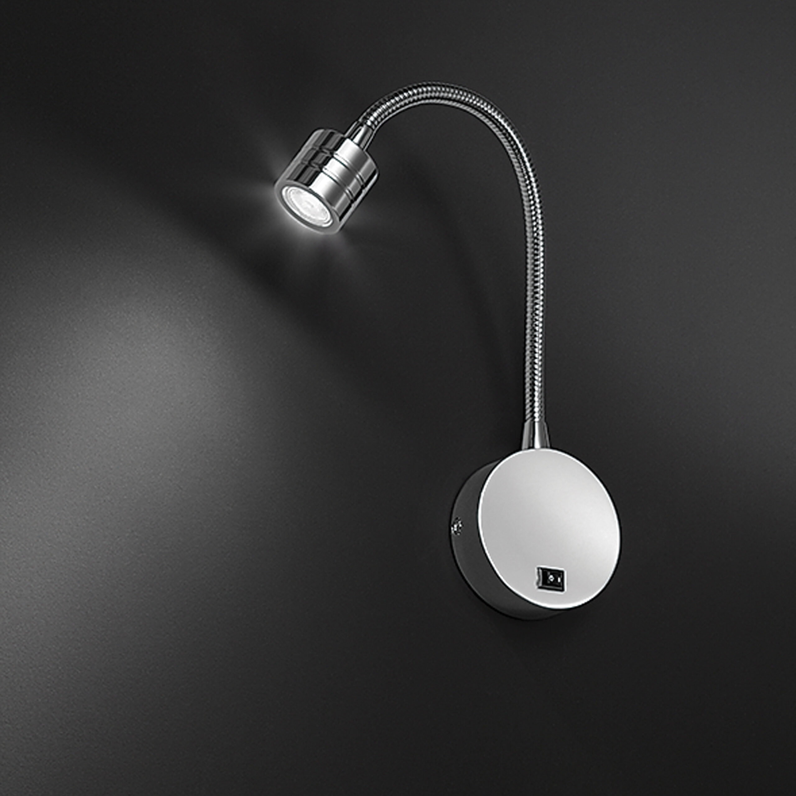 Apparecchio LED a parete. LED Edison. Lifetime 40.000h. Corpo in alluminio cromato. Lunghezza flessibile 250mm. Alimentatore incluso.