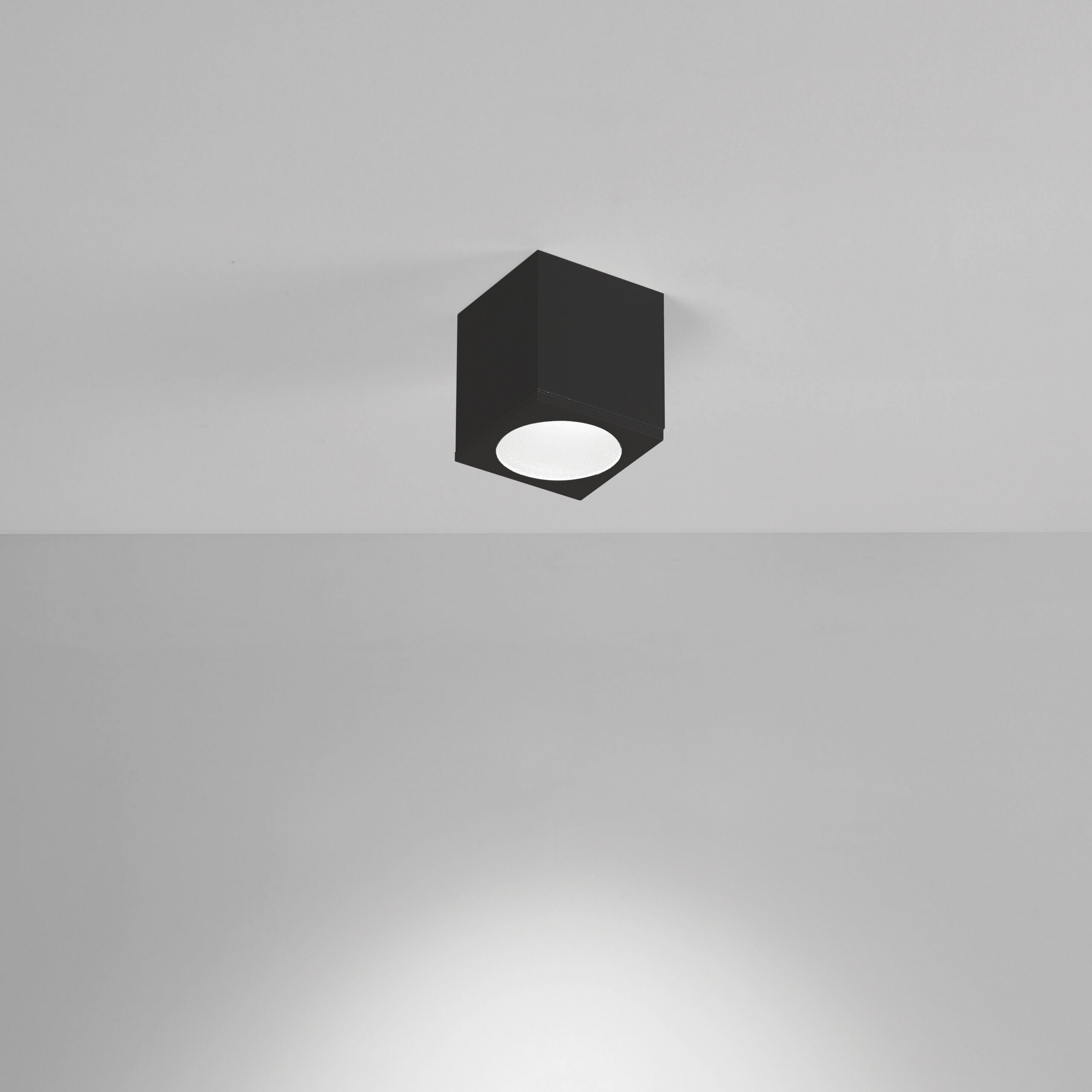 Apparecchio LED a plafone per installazione a soffitto. Lumens AC LED. Lifetime 40.000h. Corpo in alluminio verniciato bianco o nero. Riflettore intercambiabile in policarbonato cromato. Diffusore microprismatico. Alimentazione a tensione di rete 220-240V.