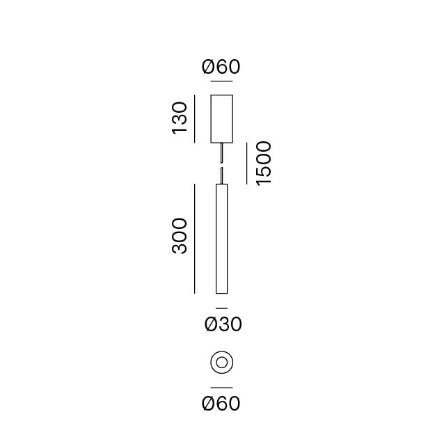 Apparecchio tubolare LED per installazione a sospensione. LED Zigen. Lifetime 40.000h. Corpo in alluminio verniciato bianco o nero. Lunghezza cavo sospensione 1500mm. Alimentatore incluso.