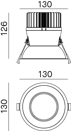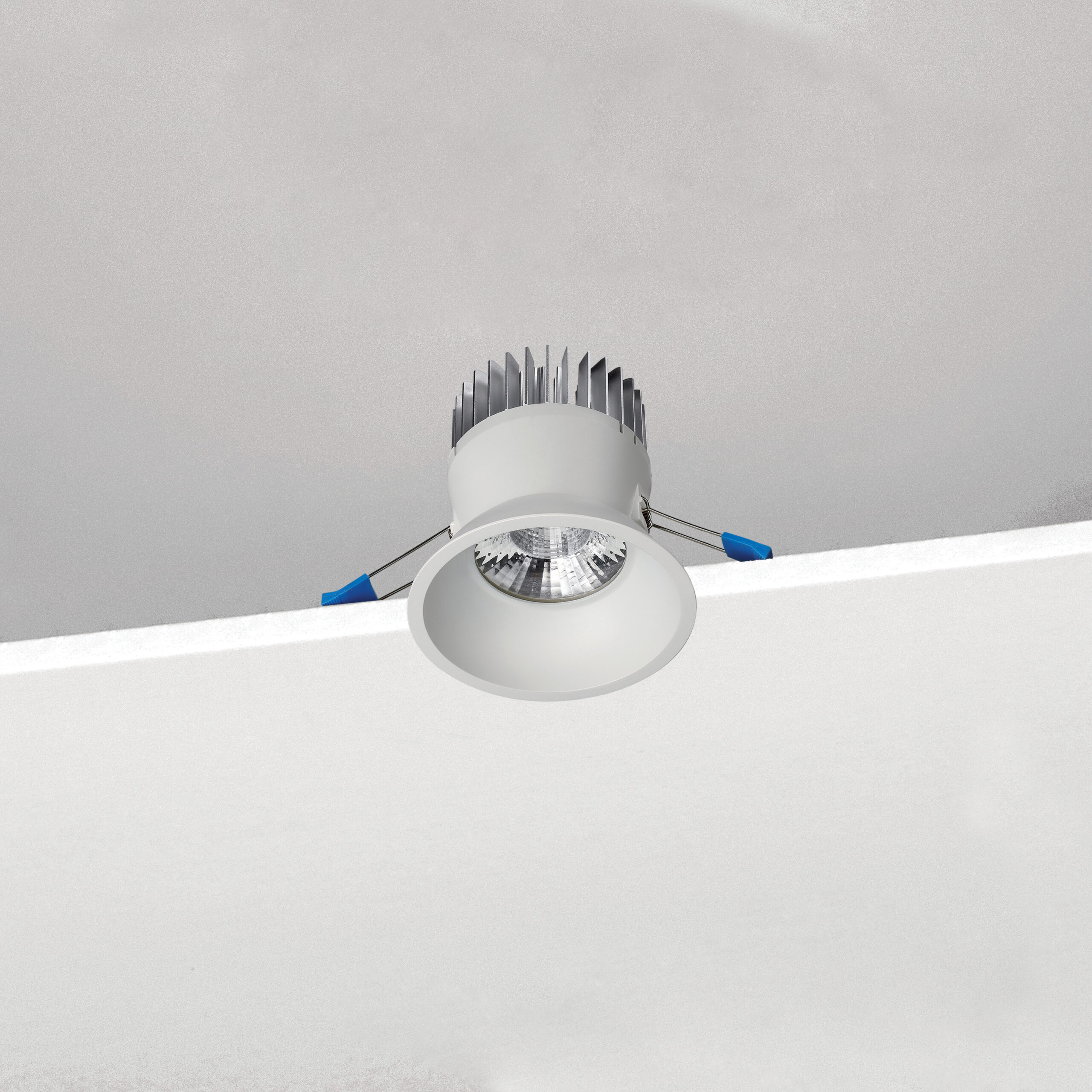 Incasso LED tondo per installazione nel controsoffitto, completo di doppia cornice per due dimensioni di foro. LED SAMSUNG CRI>90 – Lifetime >50.000h (L80B10). Dissipatore in alluminio anodizzato. Riflettore bianco in policarbonato, resistente UV. Ottica 35° e 60° in lamiera cromata. Alimentatore incluso.