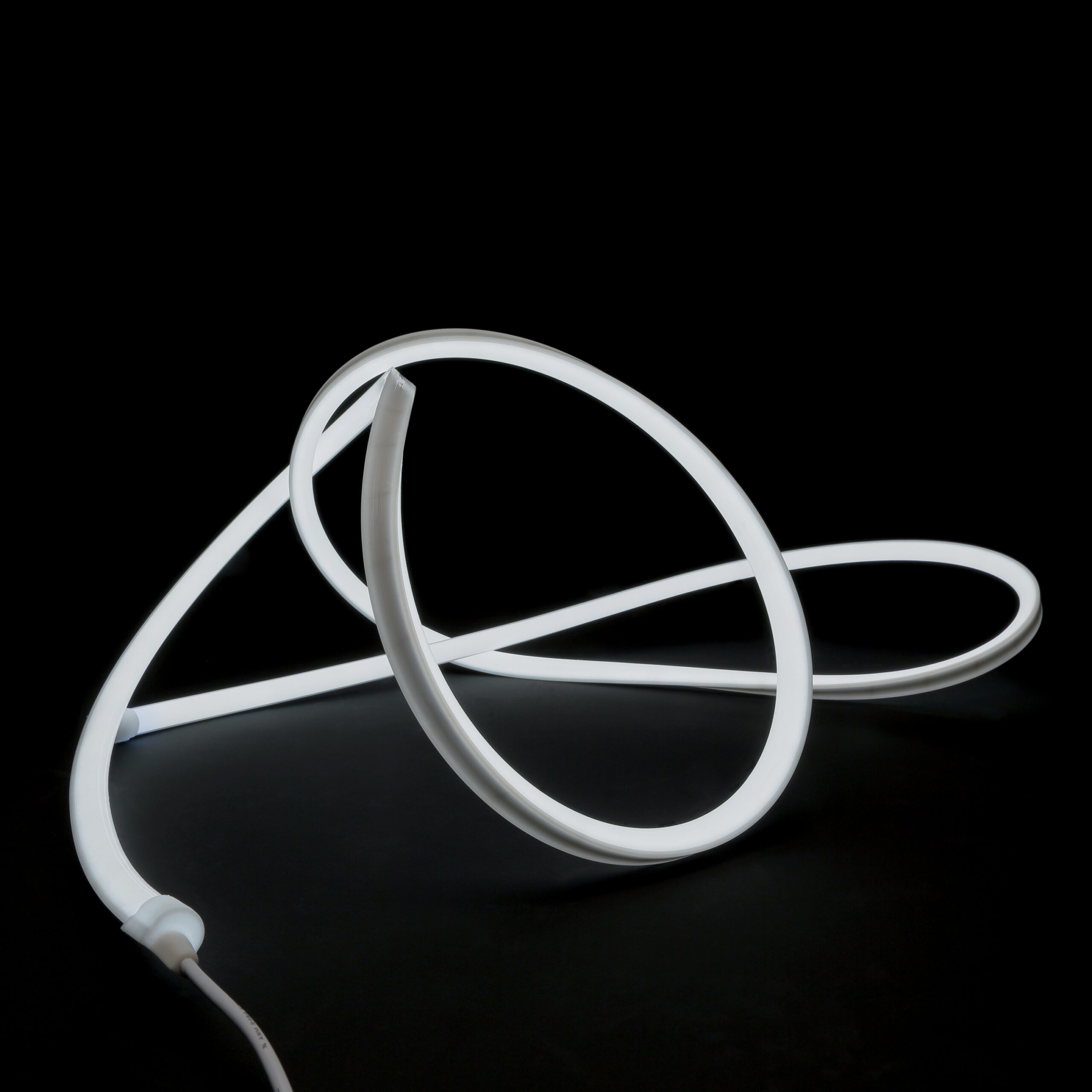 Linea luminosa LED flessibile, che permette linee dritte o curve senza interruzioni di luce. LED monocromatici montati su circuito flessibile incapsulato in silicone bianco (lato esterno) e opalescente (lato LED). Lunghezza 5m, lunghezza massima alimentabile per singola bobina: 5m. Installazione a superficie con clips o su profilo in alluminio da ordinare separatamente. Alimentatore e unità di controllo non inclusi.