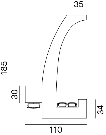 Profilo prefinito in gesso per installazione a parete, effetto bi-emissione.