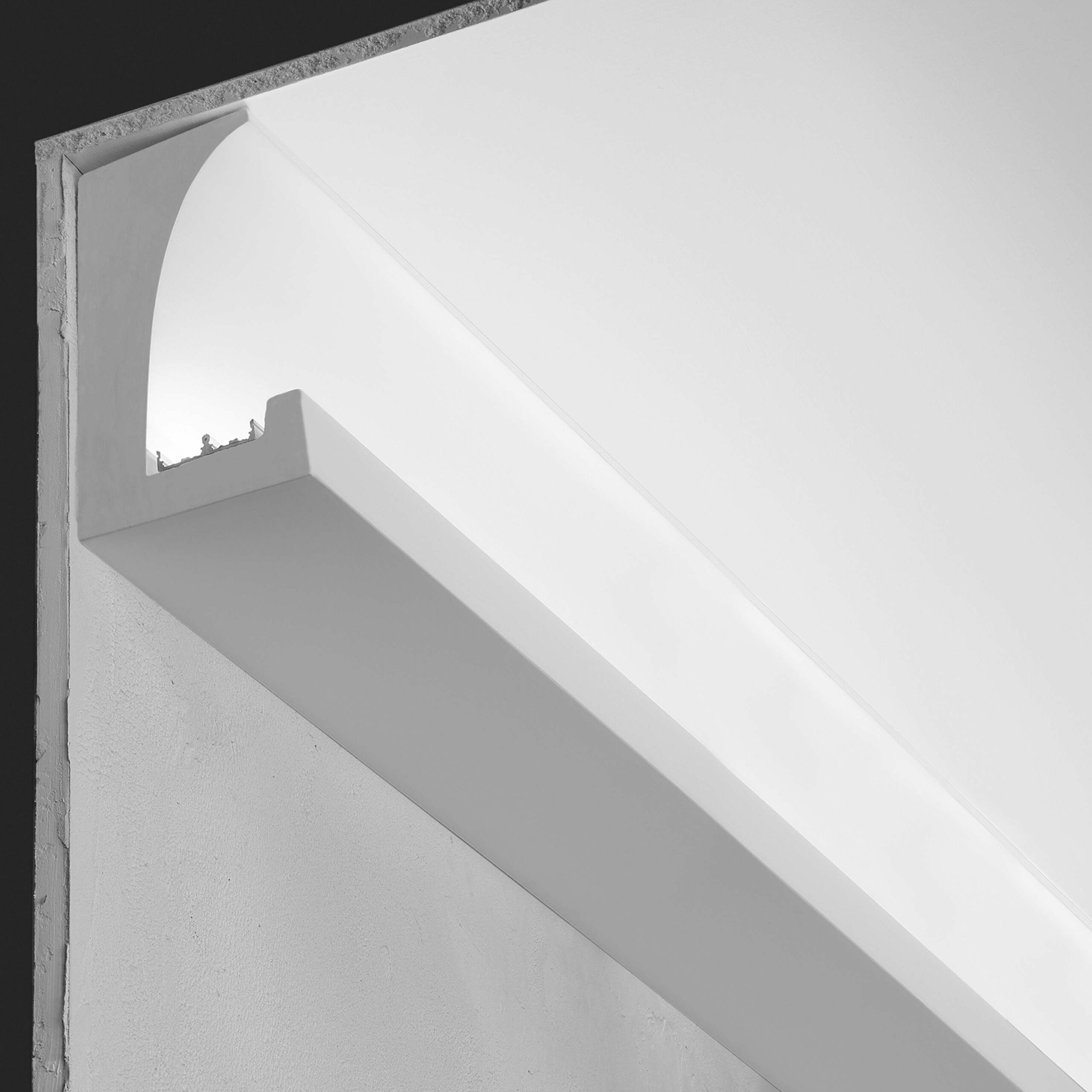 Profilo prefinito in gesso per installazione a parete, effetto luce indiretta.