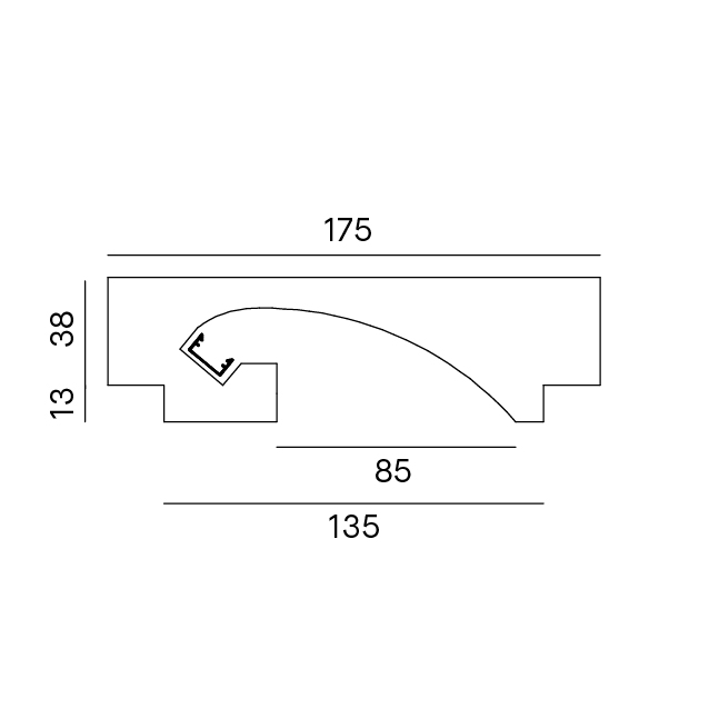 cartongesso di spessore 13mm. Elemento completo di profili di alluminio per