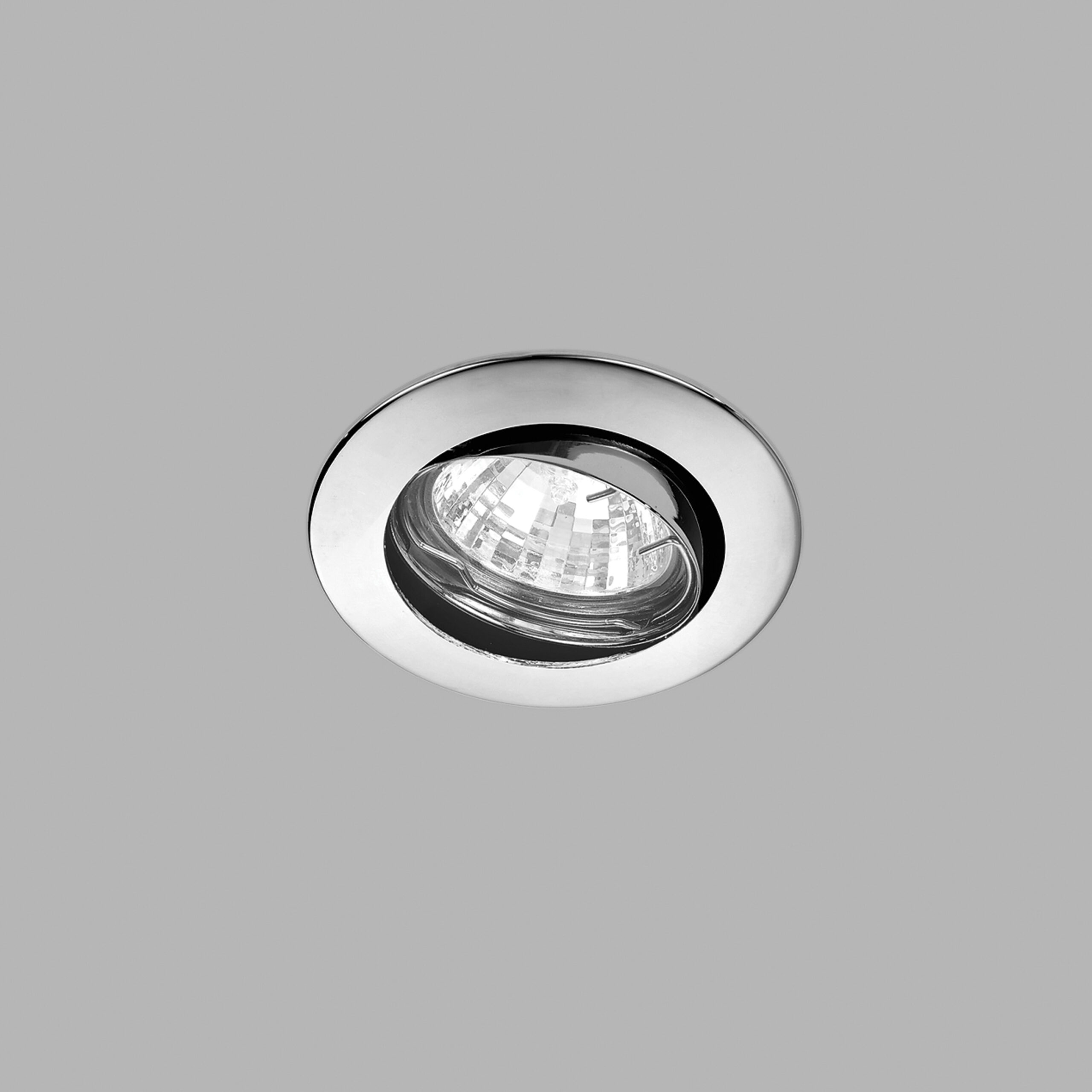 Incasso orientabile tondo da interno. Finitura in metallo. Colori disponibili: bianco, oro, cromato o nichel satinato. Completo di portalampada GU10, compatibile con lampada LED max 8W, non inclusa. Diametro 82mm, altezza 25mm. IP20