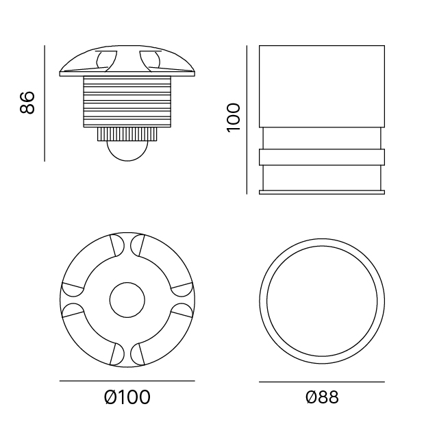 Controcassa in alluminio inclusa, ordinabile anche separatamente. Cavo in neoprene H05RN-F 2x1mm2 di 1,4m. Alimentatore non incluso.