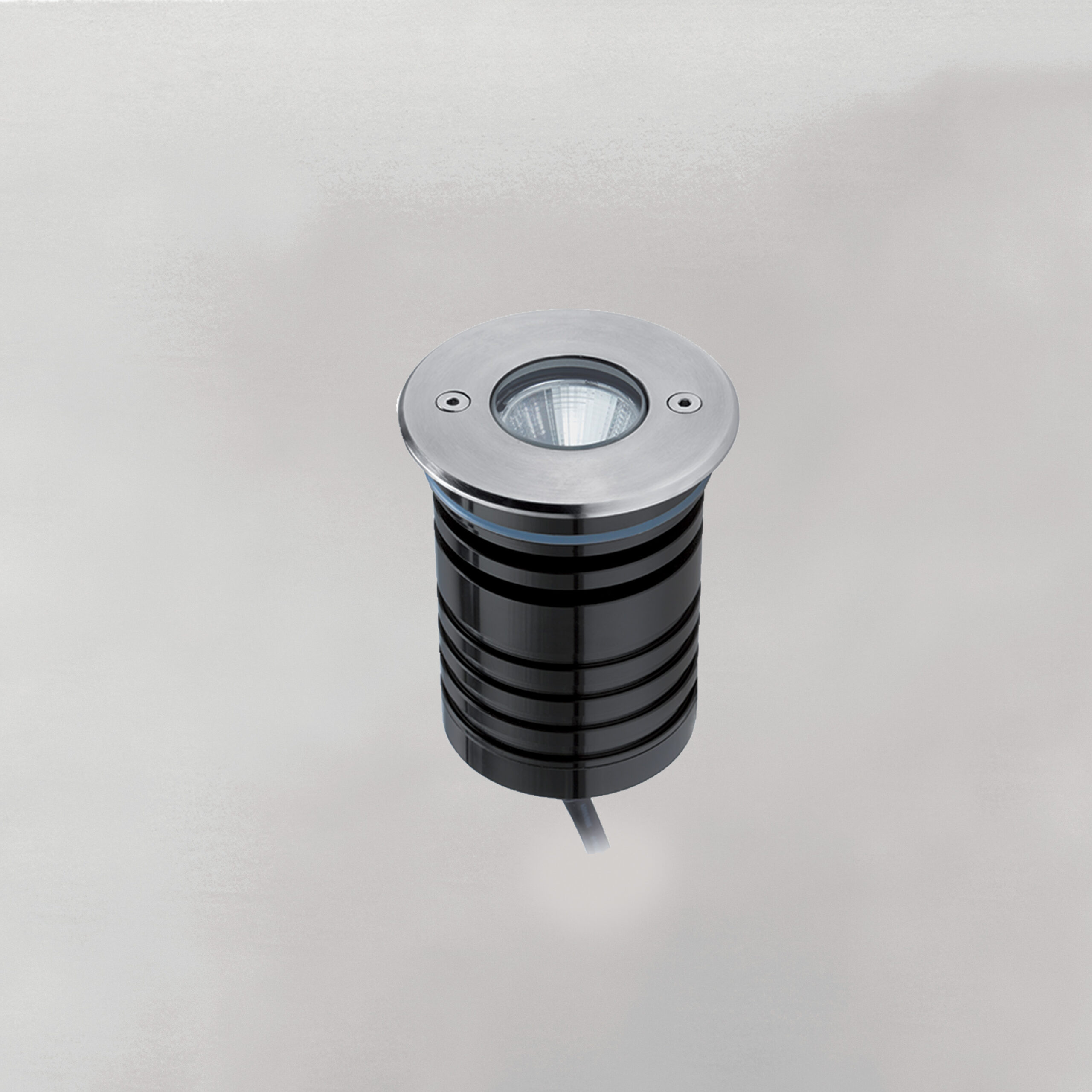 Incasso LED calpestabile tondo per installazione a pavimento. LED CREE. Lifetime 50.000h (rendimento 70%). Anello in acciaio AISI 316. Corpo in alluminio anodizzato nero. Controcassa in policarbonato inclusa, ordinabile anche separatamente. Vetro trasparente temperato spessore 12mm. Riflettore in metacrilato.