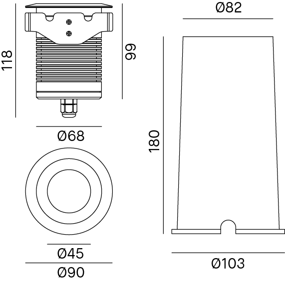 Incasso LED a pavimento calpestabile (1000 Kg). Apparecchio da sommersione fino a 3m di profondità. LED OSRAM. Lifetime 50.000h (rendimento 70%). Corpo in alluminio. Anello esterno in acciaio inox AISI 316. Guarnizioni O-RING in silicone. Molle in acciaio rivestite in neoprene. Controcassa in policarbonato inclusa