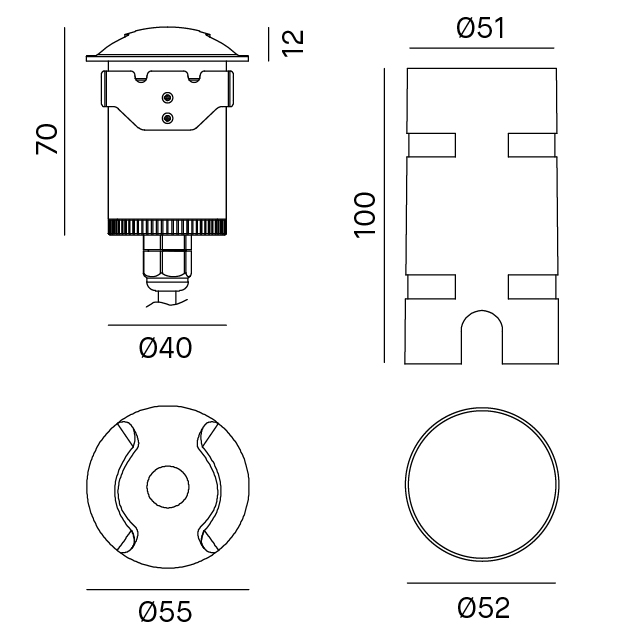 Incasso LED tondo calpestabile per installazione a pavimento. LED OSRAM. Lifetime 50.000h (rendimento 70%). Anello e cover in acciaio inox AISI 316. Corpo in alluminio anodizzato. Controcassa in policarbonato inclusa, ordinabile anche separatamente, non adatta alla sommersione. Vetro trasparente temperato