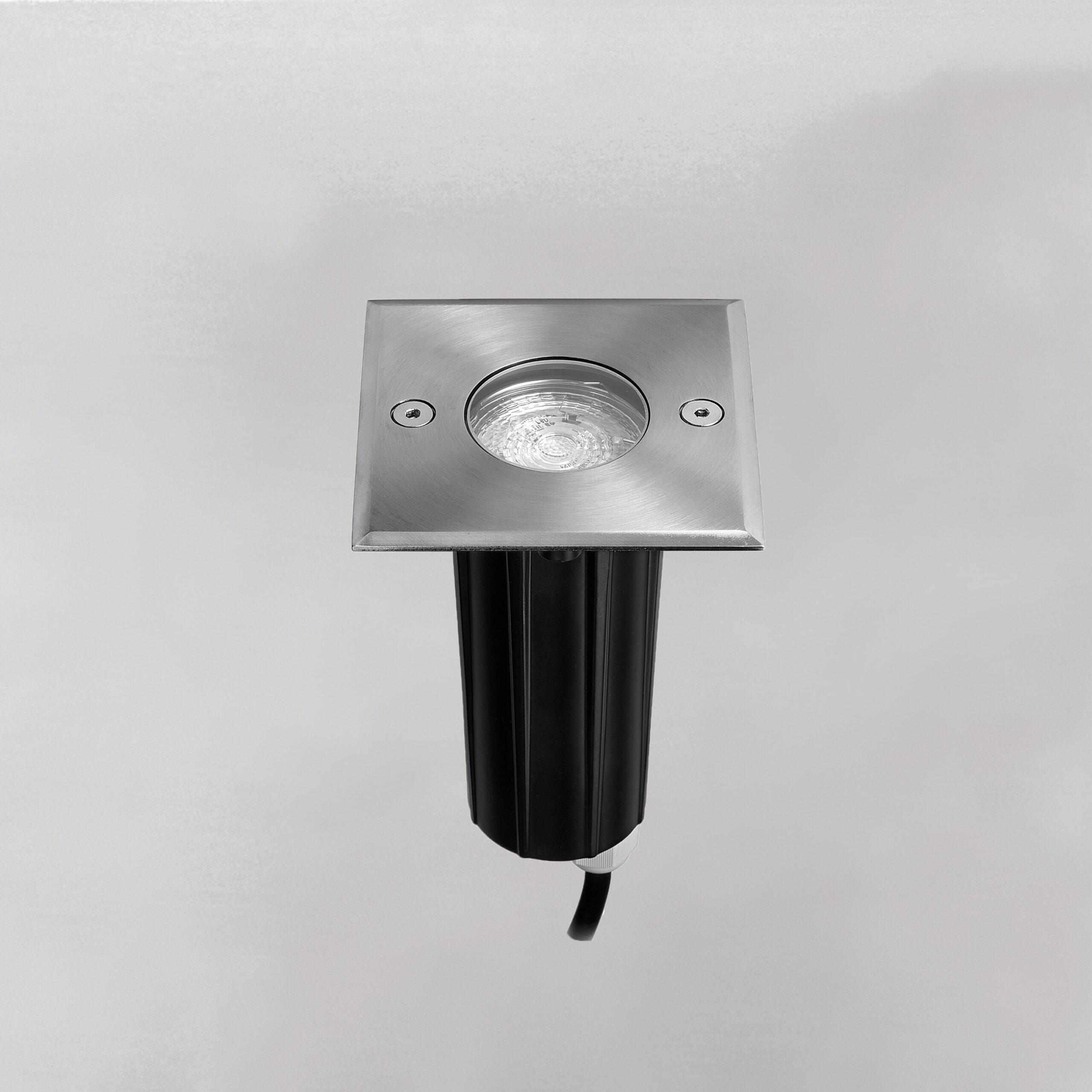 Incasso calpestabile tondo e quadro per installazione a pavimento. Portalampada GU10 integrato. Lampada LED GU10 non inclusa. Anello in acciaio AISI 316.