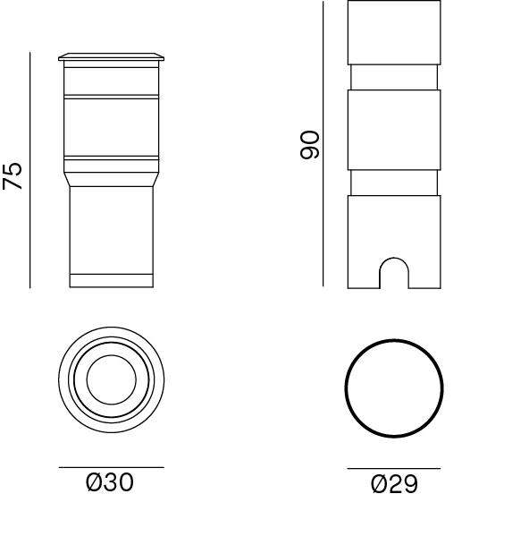 Incasso LED tondo per installazione a pavimento. LED CREE. Lifetime 30.000h (rendimento 70%). Corpo in alluminio pressofuso, anello in acciaio AISI 316.