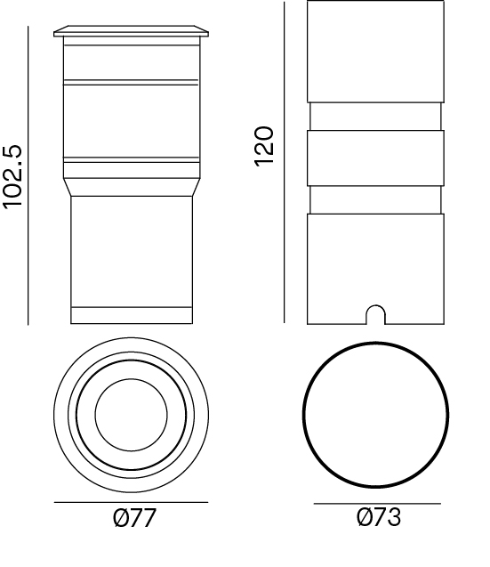 Incasso LED tondo per installazione a pavimento. LED CREE. Lifetime 30.000h (rendimento 70%). Corpo in alluminio pressofuso, anello in acciaio AISI 316.
