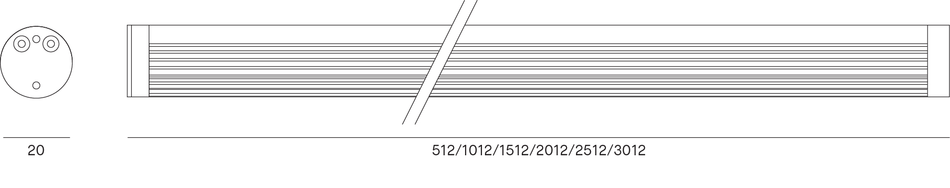 Profilo LED lineare in alluminio anodizzato diametro 20mm. LED SMD Luxeon 3014, alimentazione a 24Vdc. Installazione a superficie o sospensione mediante accessori da ordinare separatamente. Tappi in alluminio. Diffusore satinato o trasparente in policarbonato, lente lineare 50° in policarbonato. Cavo di alimentazione bianco 2×0.5mm2 lunghezza 1000mm. Alimentatori e unità di controllo non inclusi. Su richiesta disponibile 2700K e 5000K. Disponibili tagli custom per lunghezze intermedie ogni 10cm.