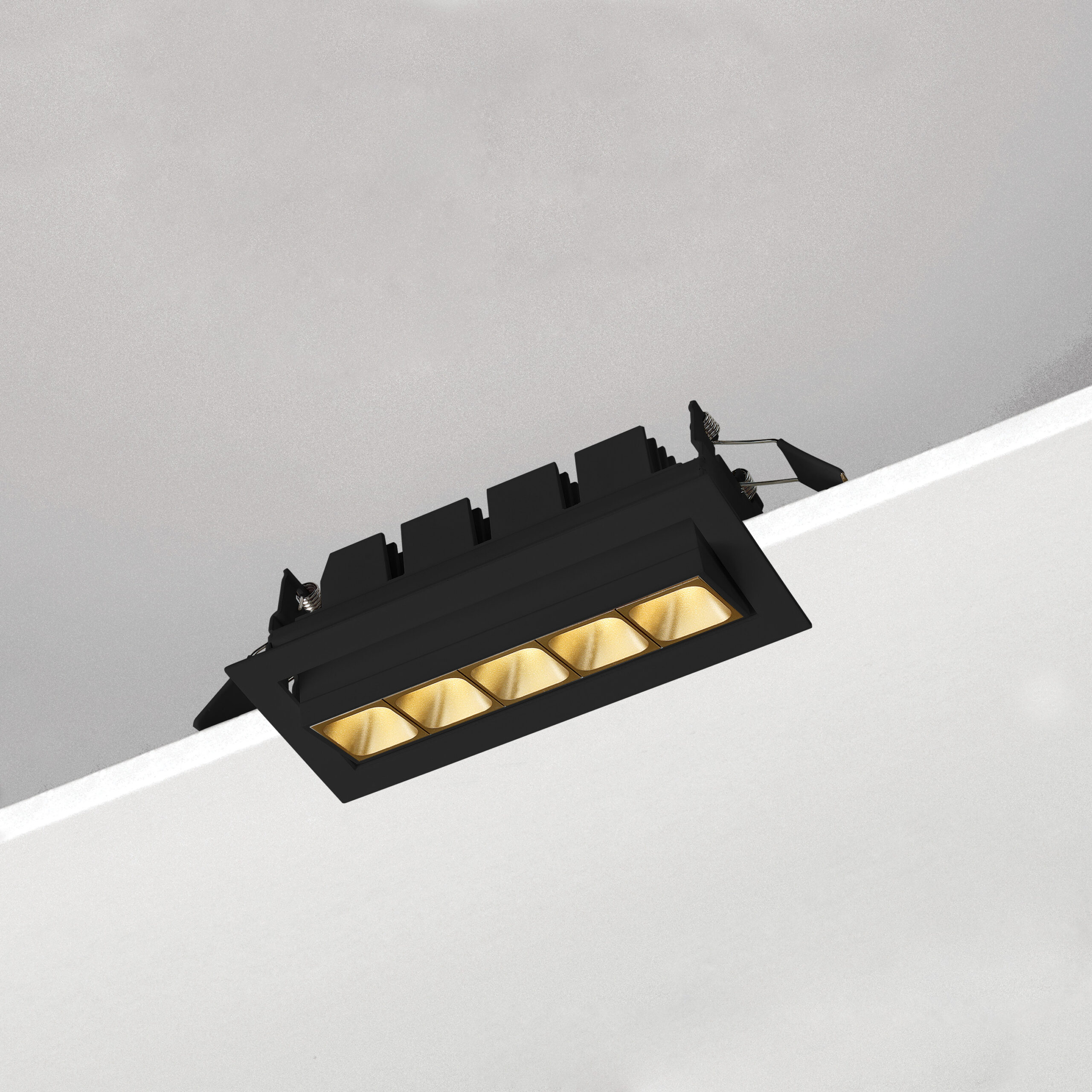 Incasso modulare LED per installazione a soffitto. Moduli 1/2/3/4/5/10 LED. Versione fissa, orientabile e wallwasher. LED OSRAM CRI>90 Lifetime >50.000h (L70B10). Corpo in alluminio, cornice bianca o nera. Riflettori in policarbonato in 4 finiture diverse. Versione wallwasher disponibile solo con finitura argento