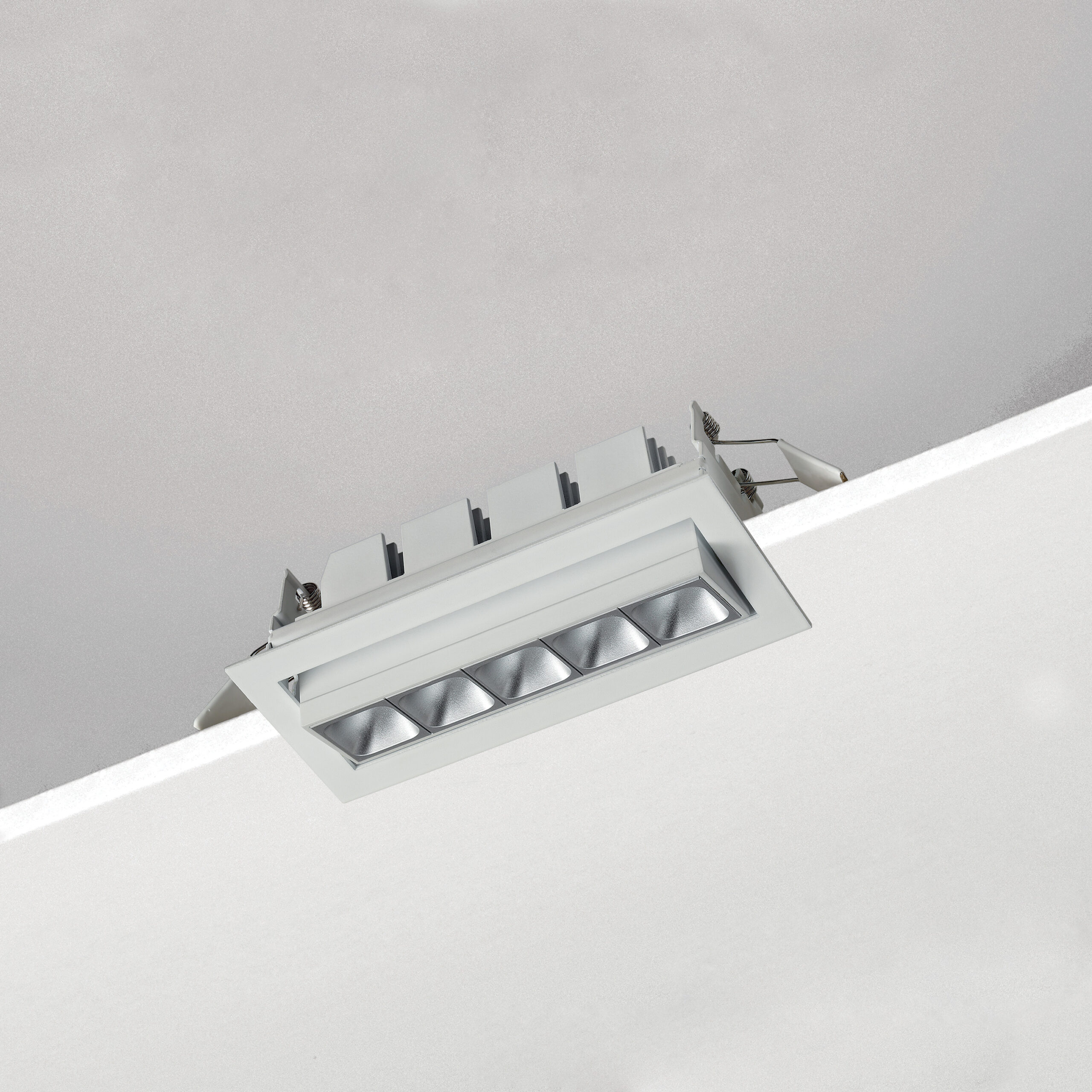 Incasso modulare LED per installazione a soffitto. Moduli 1/2/3/4/5/10 LED. Versione fissa, orientabile e wallwasher. LED OSRAM CRI>90 Lifetime >50.000h (L70B10). Corpo in alluminio, cornice bianca o nera. Riflettori in policarbonato in 4 finiture diverse. Versione wallwasher disponibile solo con finitura argento