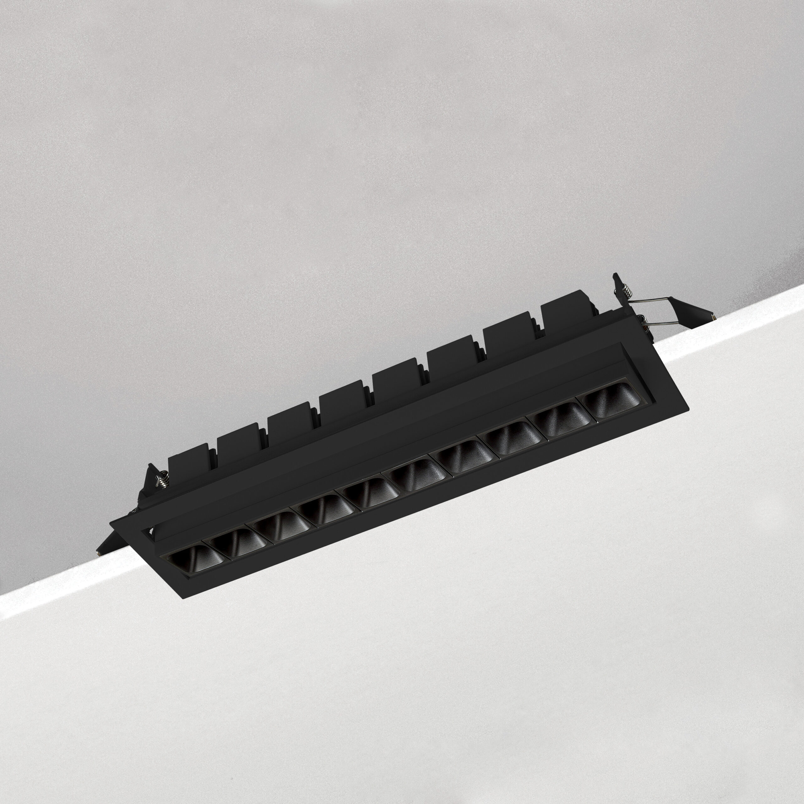 Incasso modulare LED per installazione a soffitto. Moduli 1/2/3/4/5/10 LED. Versione fissa, orientabile e wallwasher. LED OSRAM CRI>90 Lifetime >50.000h (L70B10). Corpo in alluminio, cornice bianca o nera. Riflettori in policarbonato in 4 finiture diverse. Versione wallwasher disponibile solo con finitura argento
