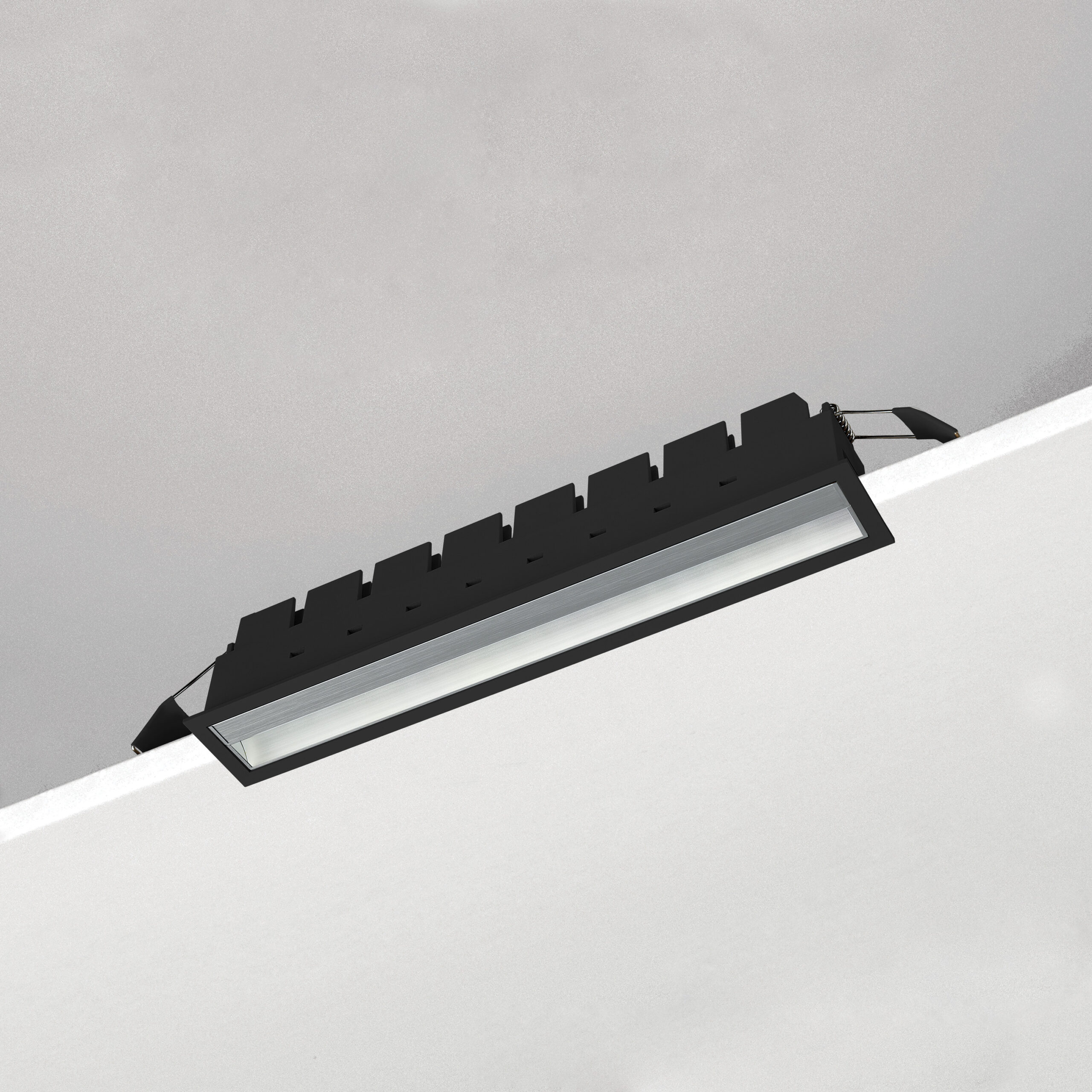 Incasso modulare LED per installazione a soffitto. Moduli 1/2/3/4/5/10 LED. Versione fissa, orientabile e wallwasher. LED OSRAM CRI>90 Lifetime >50.000h (L70B10). Corpo in alluminio, cornice bianca o nera. Riflettori in policarbonato in 4 finiture diverse. Versione wallwasher disponibile solo con finitura argento