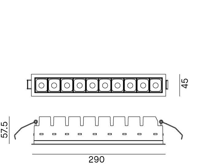 Incasso modulare LED per installazione a soffitto. Moduli 1/2/3/4/5/10 LED. Versione fissa, orientabile e wallwasher. LED OSRAM CRI>90 Lifetime >50.000h (L70B10). Corpo in alluminio, cornice bianca o nera. Riflettori in policarbonato in 4 finiture diverse. Versione wallwasher disponibile solo con finitura argento