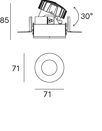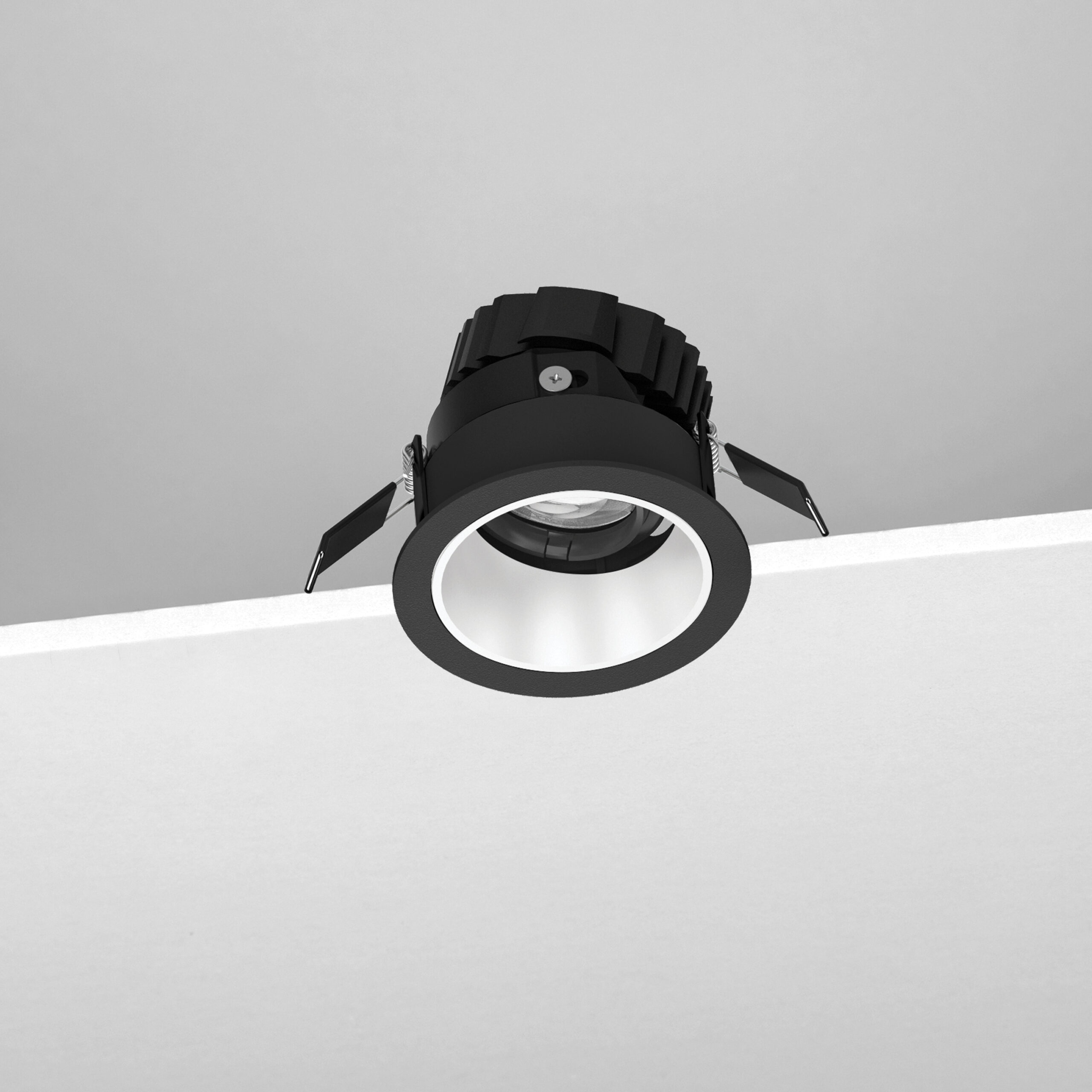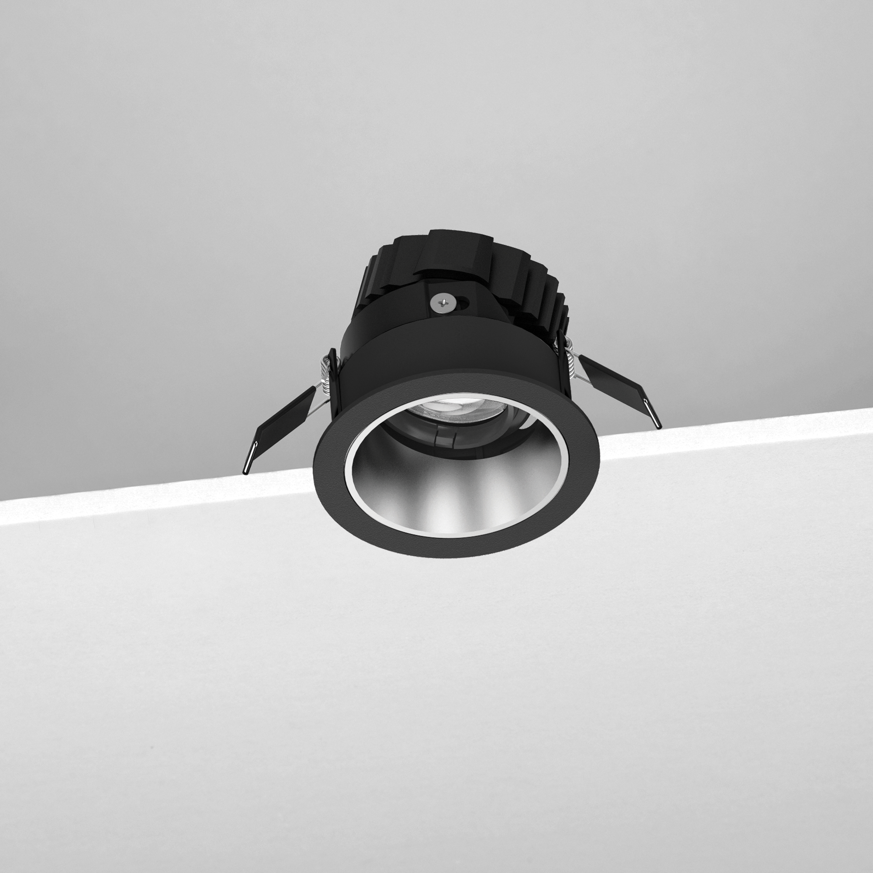 Corpo in alluminio pressofuso. Cornice in alluminio verniciato bianco o nero, o cornice trimless per controsoffitti in cartongesso. Riflettore in policarbonato