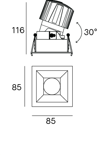 Incasso LED orientabile, tondo o quadrato, in n.2 misure per installazione a soffitto. MV0 LED CITIZEN, MV1 LED BRIDGELUX V9 CRI>90. Lifetime >50.000h (L70B10).