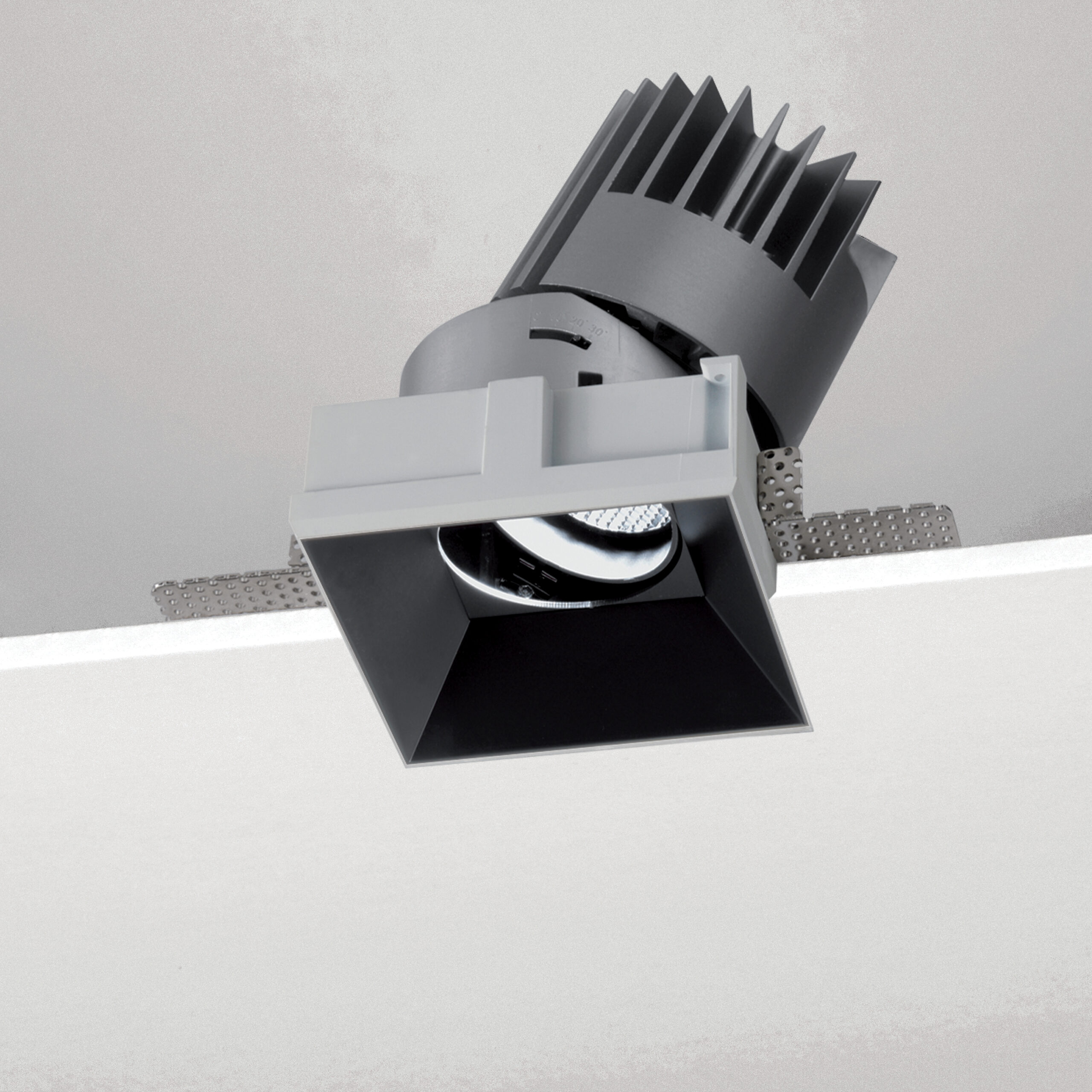 Incasso LED fisso o orientabile, tondo o quadrato, in n.5 misure, per installazione a soffitto. MM: LED COB CREE CRI>90. M0-M1-M2-M3: LED COB CITIZEN CRI>90 (range potenza: 4W-38W). Lifetime >50.000h (L70B10). Corpo in alluminio pressofuso. Modulo LED IP54 (M0-M1-M2-M3). Cornice in alluminio verniciato bianco con staffe di fissaggio regolabili. Riflettori in policarbonato disponibili in diverse finiture. Alimentatore incluso. Disponibili versioni dimmerabili e controllo remoto.