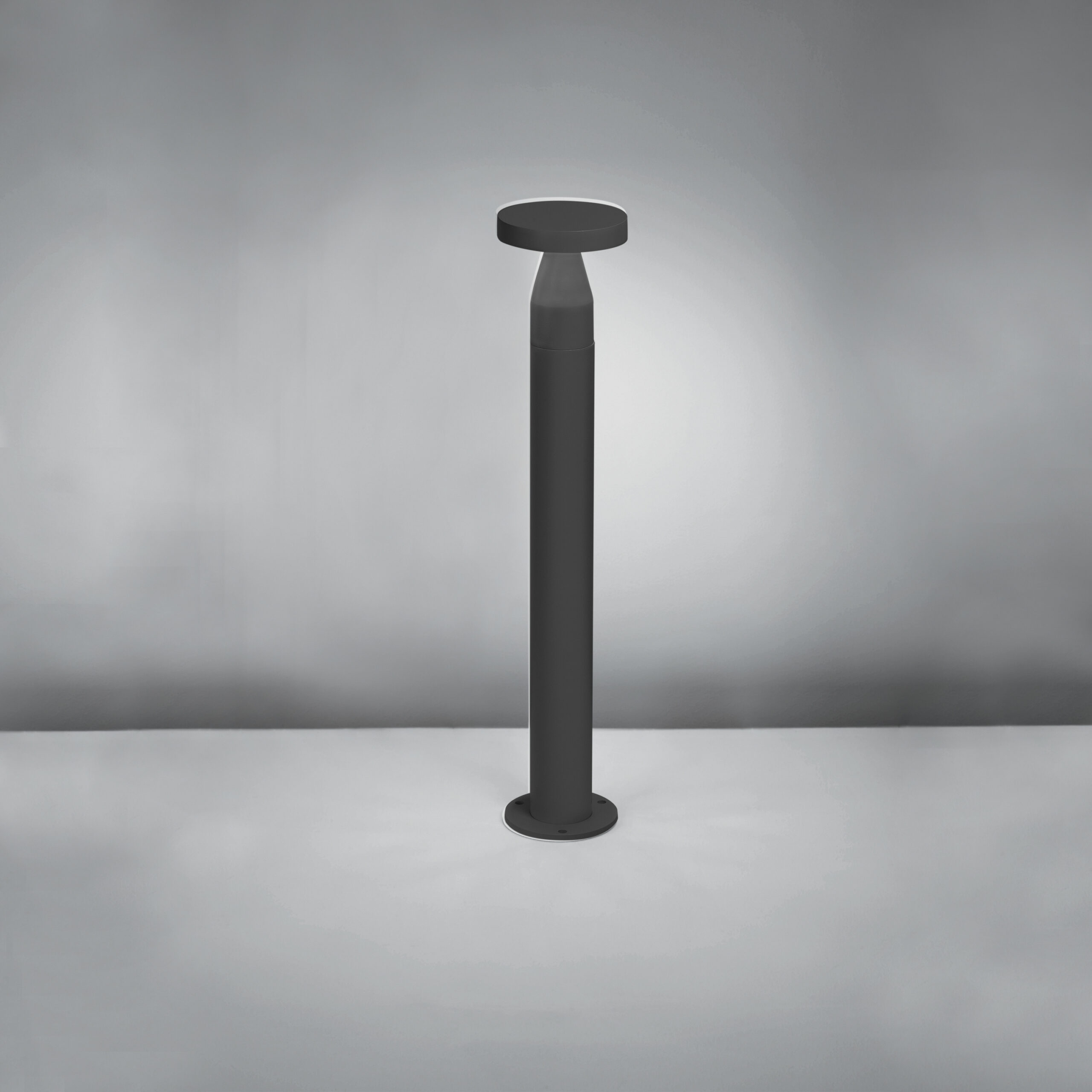 Bollard LED per installazione a pavimento. LED OSRAM. Lifetime 50.000h (rendimento 70%). Corpo in pressofusione di alluminio vernicato bianco, antracite o grigio. Diffusore in vetro microprismatico. Tiranti per il fissaggio nel terreno inclusi. Alimentatore integrato.