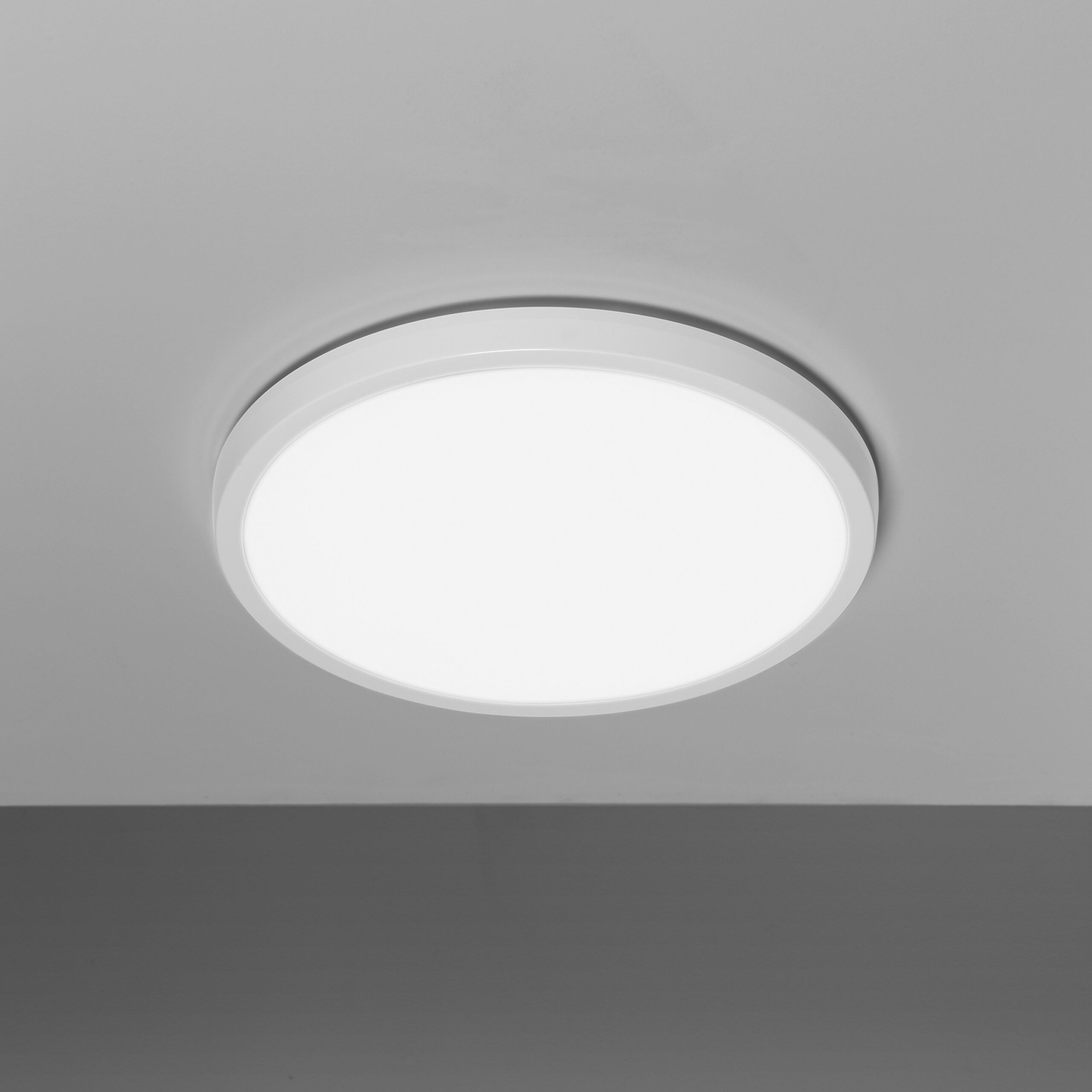 Plafoniera LED tonda IP65 per installazione a plafone e a parete. LED 2835. Lifetime 30.000h (rendimento 70%). Corpo in policarbonato bianco e diffusore opale. Anello in policarbonato bianco. Alimentatore incluso.