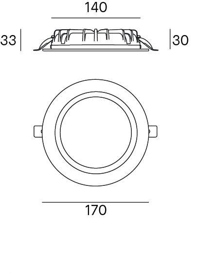 Apparecchio LED tondo da incasso a luce diffusa. LED SMD2835. Lifetime 50.000h (L70B10). Corpo in alluminio pressofuso e cornice in alluminio verniciato