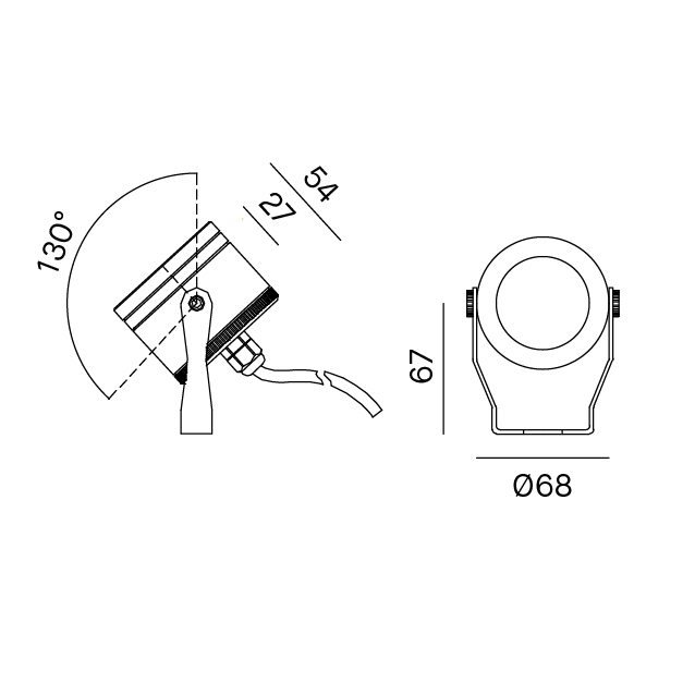 Proiettore LED con staffa orientabile per installazione a pavimento, parete o soffitto. LED OSRAM. Lifetime 50.000h (rendimento 70%). Corpo e staffa in alluminio. Cavo in neoprene H05RN-F 2×0,75mm2 di 3m. Alimentatore non incluso. PICCHETTO/A8 Picchetto mm.170 da ordinare separatamente.