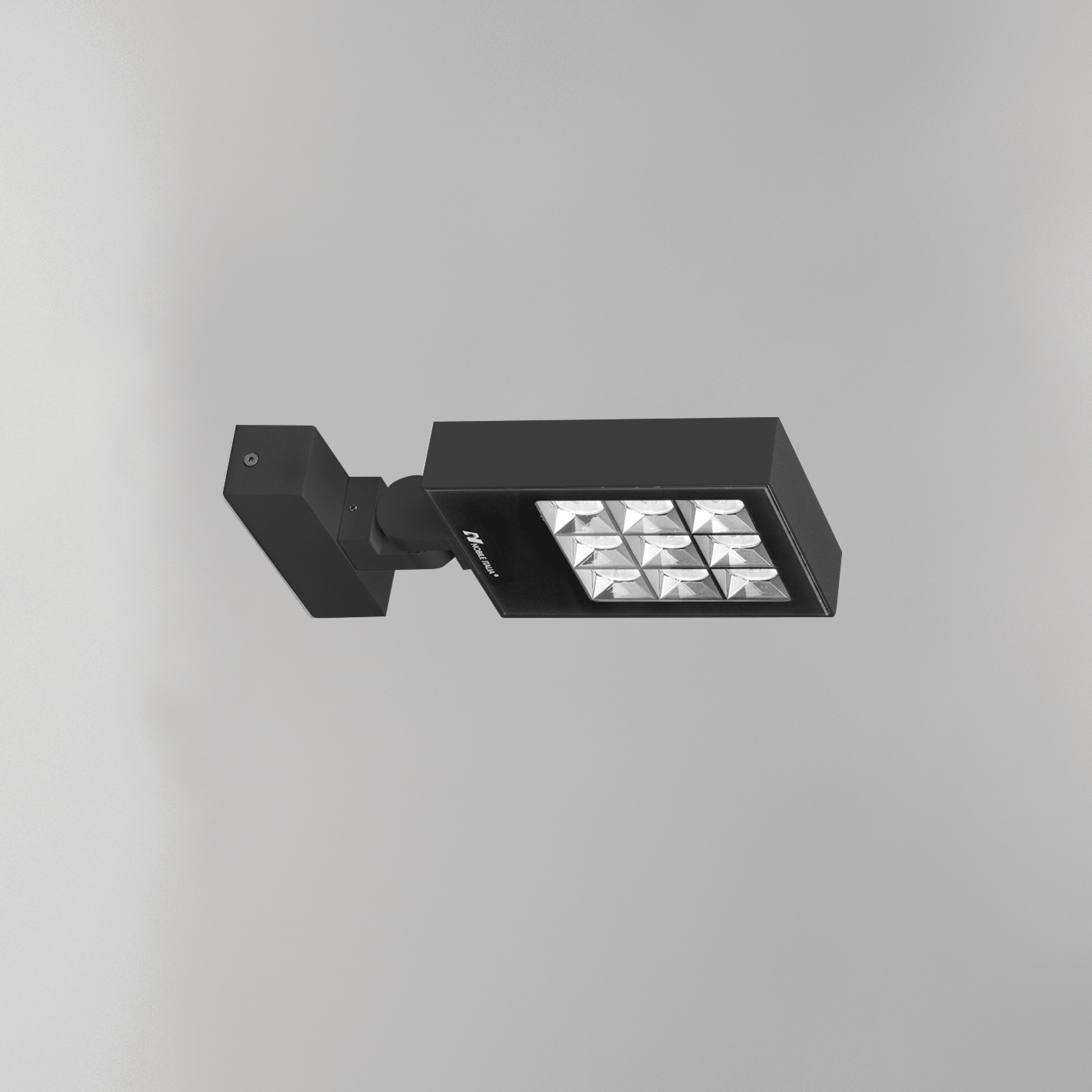 Proiettore LED IP67 per installazione a parete o su palo Ø60mm e Ø76mm (palo non fornito), mediante appositi accessori. LED CREE. Versione asimmetrica LED