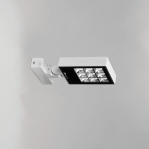 SAMSUNG G3. Lifetime 50.000h (rendimento 70%). Corpo in pressofusione di alluminio verniciato bianco, antracite o grigio. Diffusore in vetro serigrafato nero. Lente in policarbonato. Versione asimmetrica con riflettore in alluminio. Cavo in neoprene H05RN-F 3×0.75mm2 di 1.5m. Alimentatore integrato.