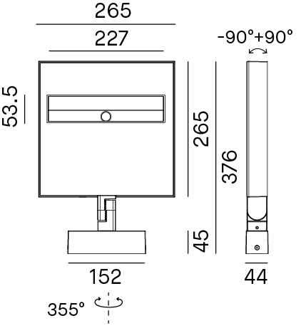 Proiettore LED IP67 per installazione a parete o su palo Ø60mm e Ø76mm (palo non fornito), mediante appositi accessori. LED CREE. Versione asimmetrica LED