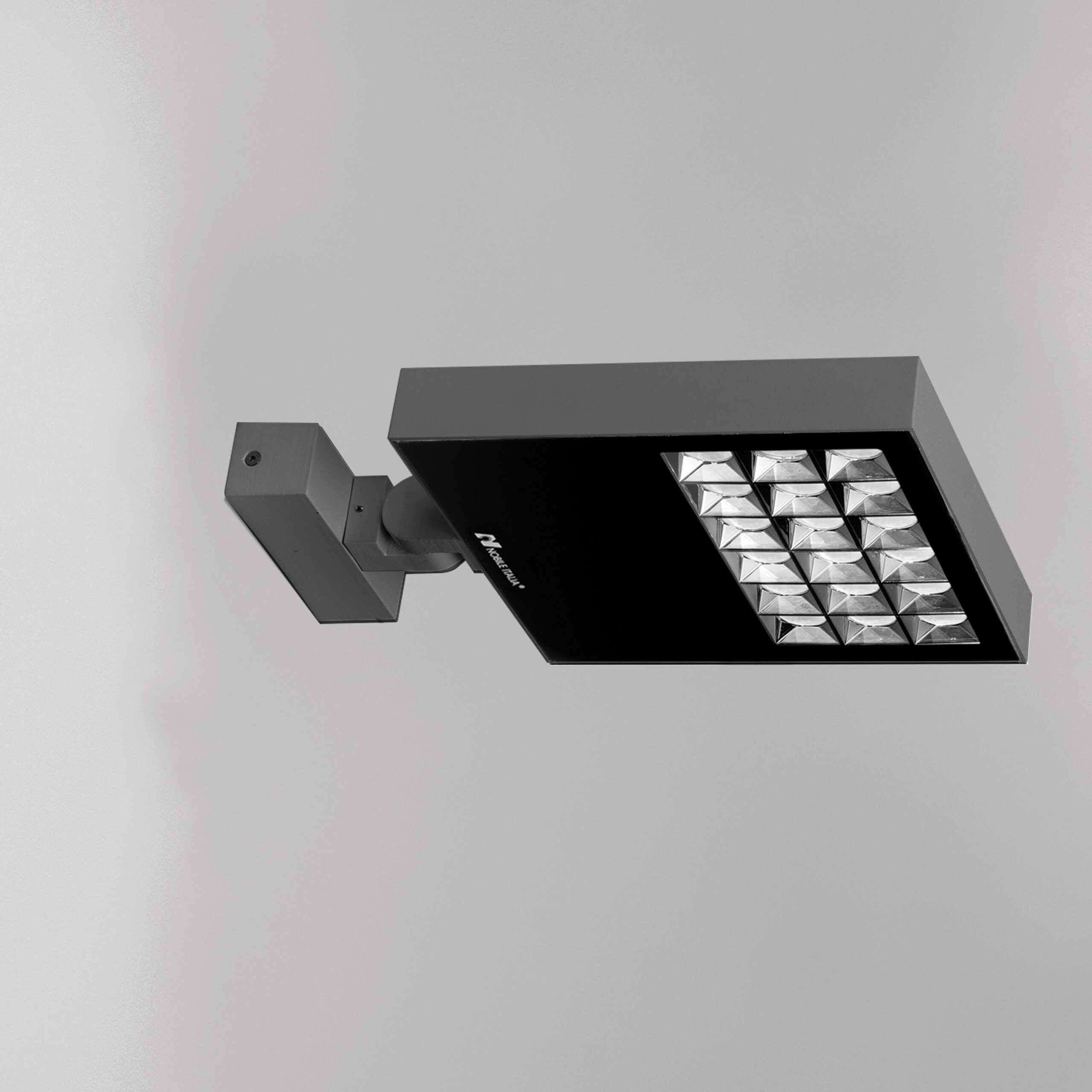 SAMSUNG G3. Lifetime 50.000h (rendimento 70%). Corpo in pressofusione di alluminio verniciato bianco, antracite o grigio. Diffusore in vetro serigrafato nero. Lente in policarbonato. Versione asimmetrica con riflettore in alluminio. Cavo in neoprene H05RN-F 3×0.75mm2 di 1.5m. Alimentatore integrato.