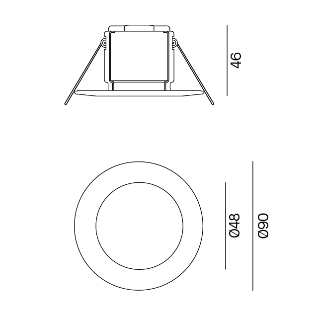 Apparecchio LED tondo ad incasso con ottica fissa e cornice. Cornice in alluminio verniciato bianco. Corpo in materiale plastico nero. Alimentatore integrato. Dimmerabile TRIAC.