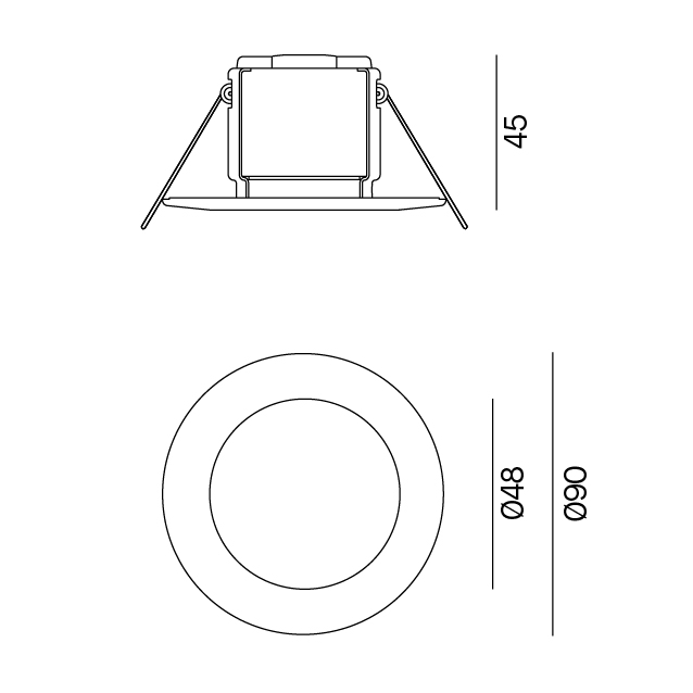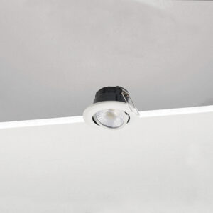 Apparecchio LED tondo ad incasso con ottica fissa e cornice. Cornice in alluminio verniciato bianco. Corpo in alluminio verniciato nero. Alimentatore integrato. Dimmerabile TRIAC.