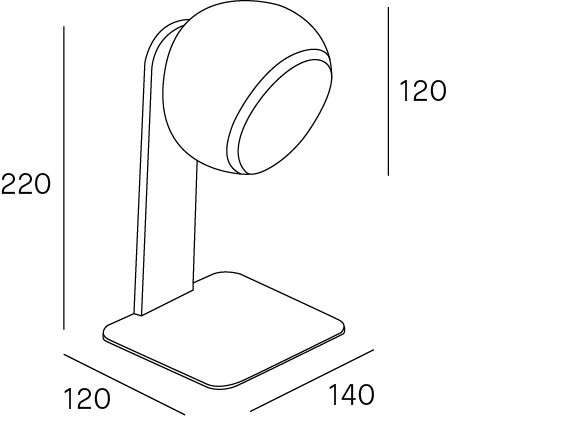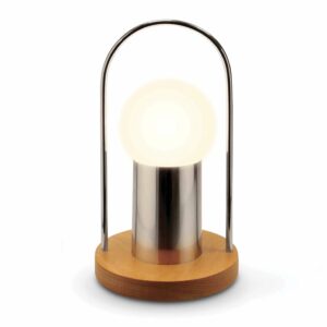 Lampada con batteria ricaricabile. Corpo lampada e base in alluminio verniciato. Diffusore in policarbonato.