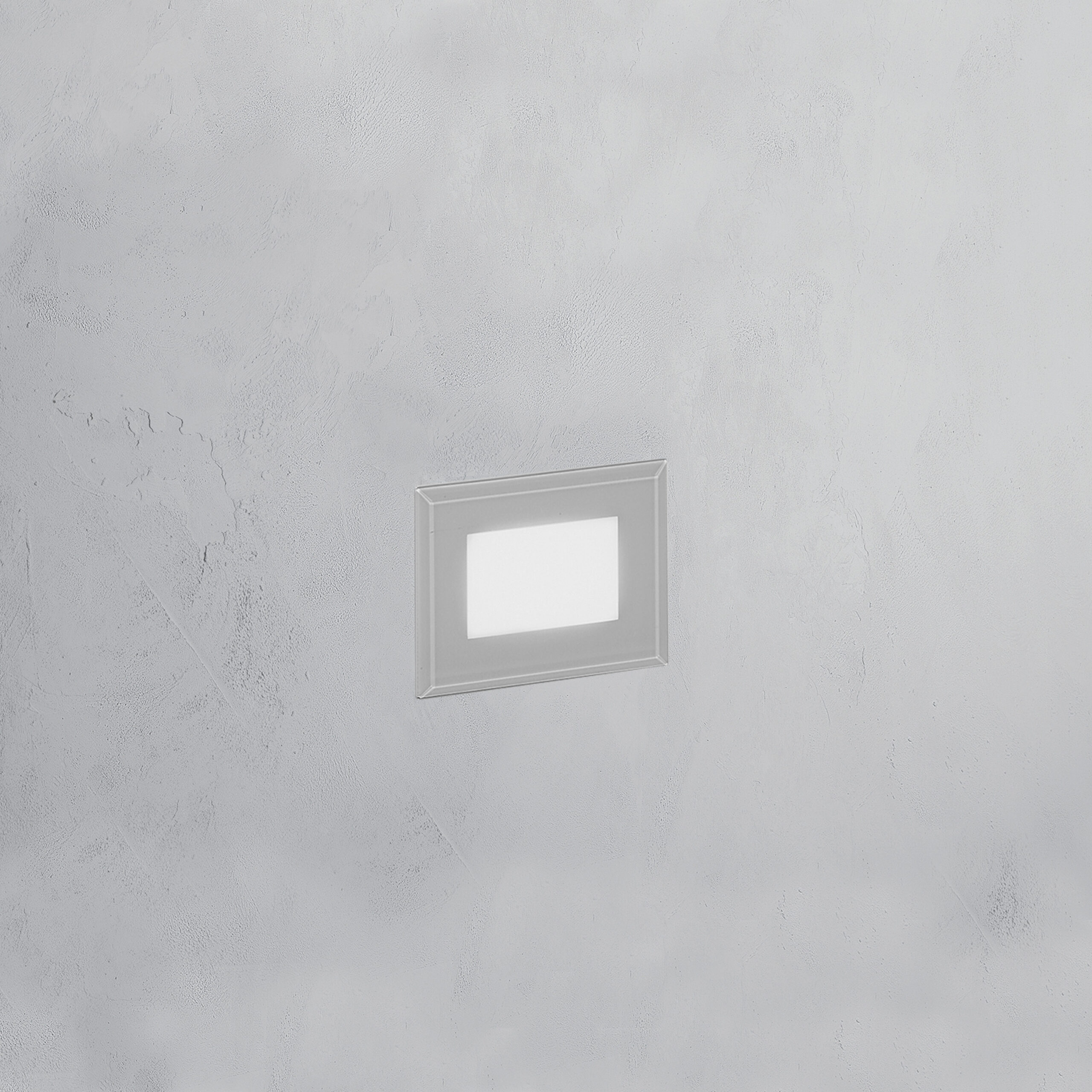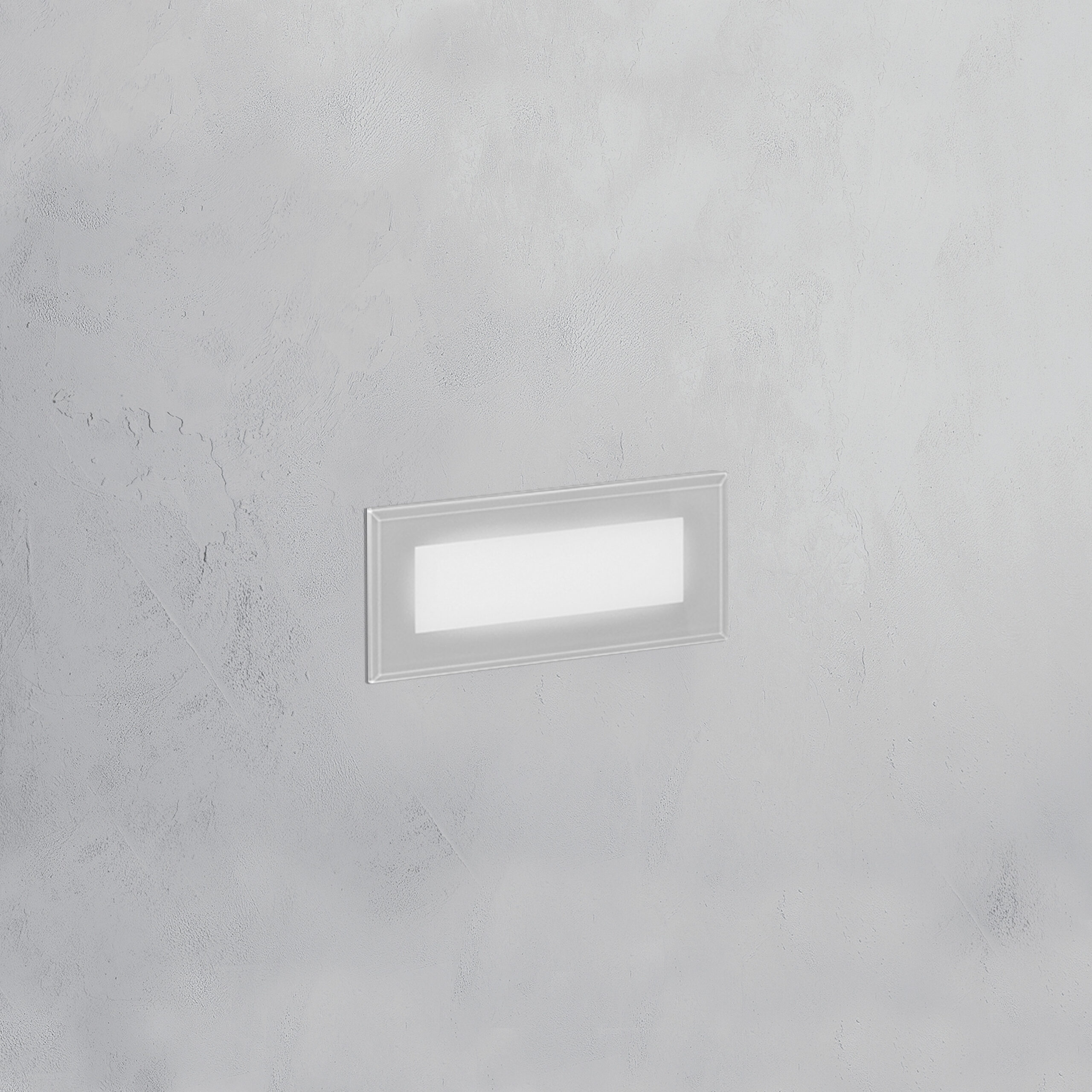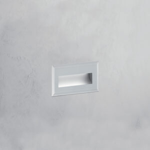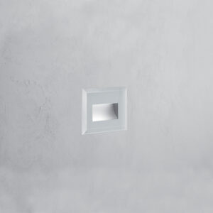 Incasso a LED per installazione a parete. LED OSRAM. Lifetime 50.000h (rendimento 70%). Corpo in alluminio bianco. Diffusore in vetro satinato temperato e serigrafato grigio. Cavo in neoprene H05RN-F 3x1mm2 di 0,5m. Controcassa in acciaio inclusa. Compatibile con scatola 503 (solo per mercato italiano). Alimentatore incluso.