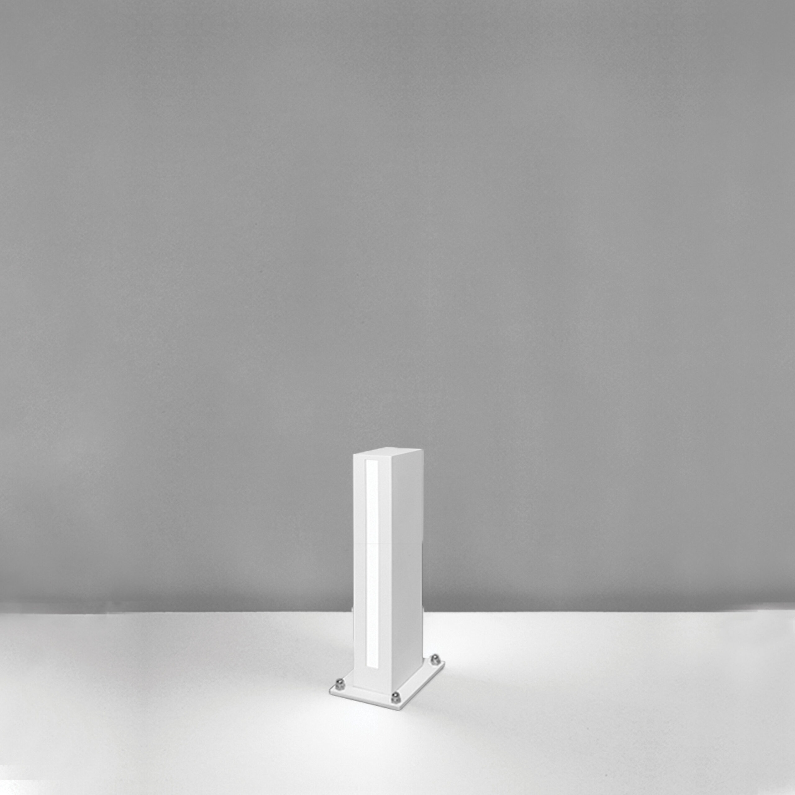 Bollard LED per installazione a pavimento, con fascio mono e bidirezionale. LED OSRAM. Lifetime 50.000h (rendimento 70%). Corpo in alluminio pressofuso verniciato bianco, antracite o grigio. Diffusore satinato in policarbonato. Cavo in neoprene H05RN-F 3×0.75mm2 di 1,5m. Guarnizioni in silicone. Tiranti per il fissaggio nel terreno inclusi. Alimentatore incluso.