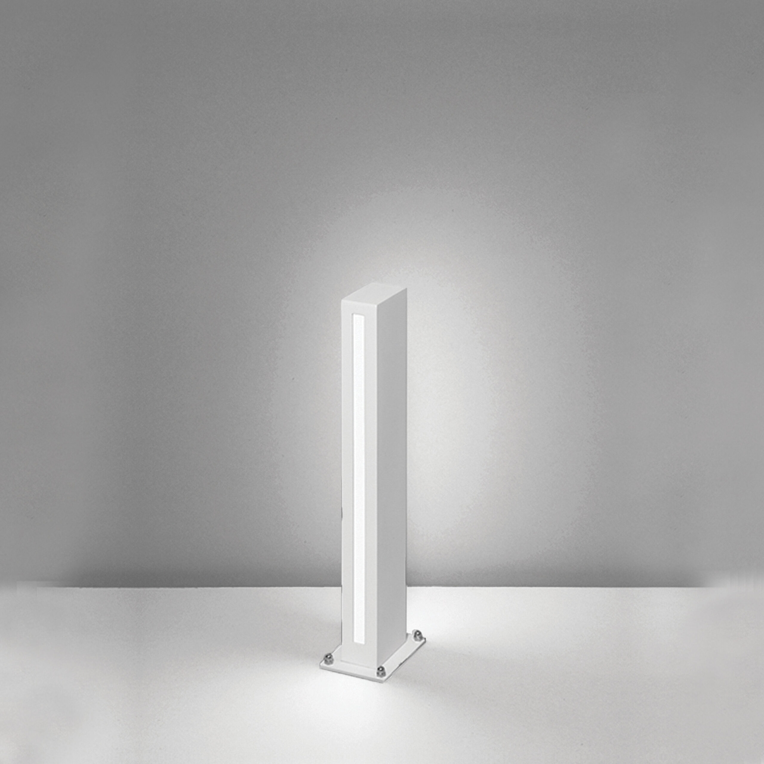 Bollard LED per installazione a pavimento, con fascio mono e bidirezionale. LED OSRAM. Lifetime 50.000h (rendimento 70%). Corpo in alluminio pressofuso verniciato bianco, antracite o grigio. Diffusore satinato in policarbonato. Cavo in neoprene H05RN-F 3×0.75mm2 di 1,5m. Guarnizioni in silicone. Tiranti per il fissaggio nel terreno inclusi. Alimentatore incluso.