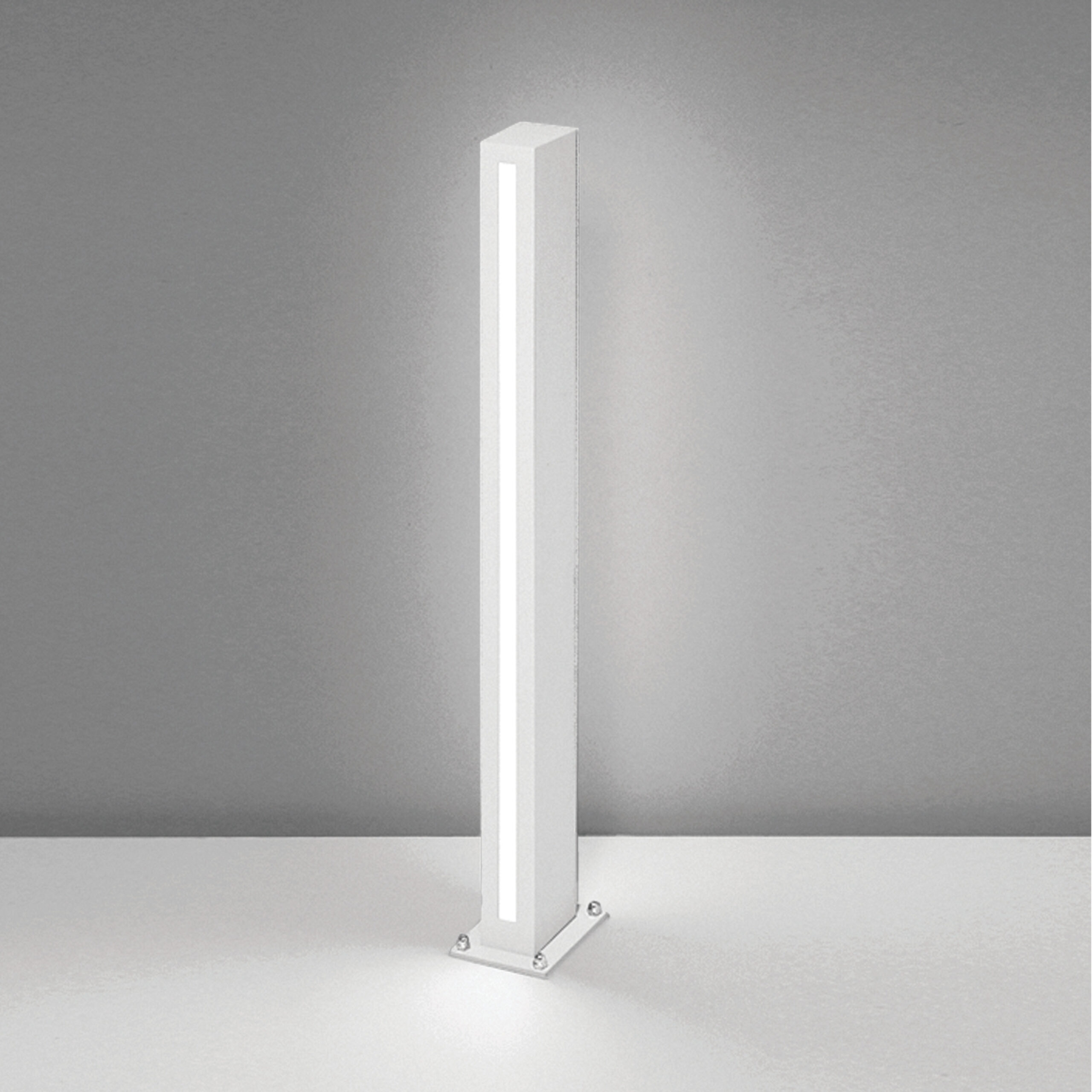 Bollard LED per installazione a pavimento, con fascio mono e bidirezionale. LED OSRAM. Lifetime 50.000h (rendimento 70%). Corpo in alluminio pressofuso verniciato bianco, antracite o grigio. Diffusore satinato in policarbonato. Cavo in neoprene H05RN-F 3×0.75mm2 di 1,5m. Guarnizioni in silicone. Tiranti per il fissaggio nel terreno inclusi. Alimentatore incluso.