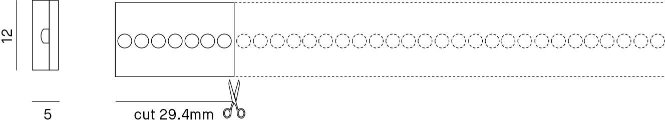 Striscia LED IP67 flessibile. Reel to Reel: unico PCB da 5m senza saldature. LED monocromatici montati su circuito flessibile bianco, in un tubo in silicone trasparente con nastro biadesivo 3M sul retro. Lunghezza 5m, lunghezza massima alimentabile per singola bobina: 5m. Kit tappi di chiusura IP e 10 clip con viti, incluso nella confezione, ordinabile separatamente cod. KIT/LS01/TAPPI. Installazione con clips o su profilo in alluminio da ordinare separatamente. Alimentatore e unità di controllo non inclusi.