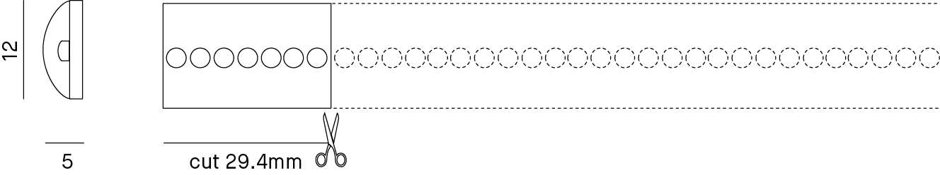 5m, lunghezza massima alimentabile per singola bobina: 5m. Kit tappi di chiusura IP e 10 clip con viti, incluso nella confezione, ordinabile separatamente cod. KIT/LS01/TAPPI. Installazione con clips o su profilo in alluminio da ordinare separatamente. Alimentatore e unità di controllo non inclusi.