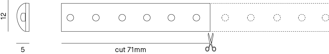 lunghezza massima alimentabile per singola bobina: 5m. Kit tappi di chiusura IP e 10 clip con viti, incluso nella confezione, ordinabile separatamente cod. KIT/LS01/TAPPI. Installazione con clips o su profilo in alluminio da ordinare separatamente. Alimentatore e unità di controllo non inclusi.